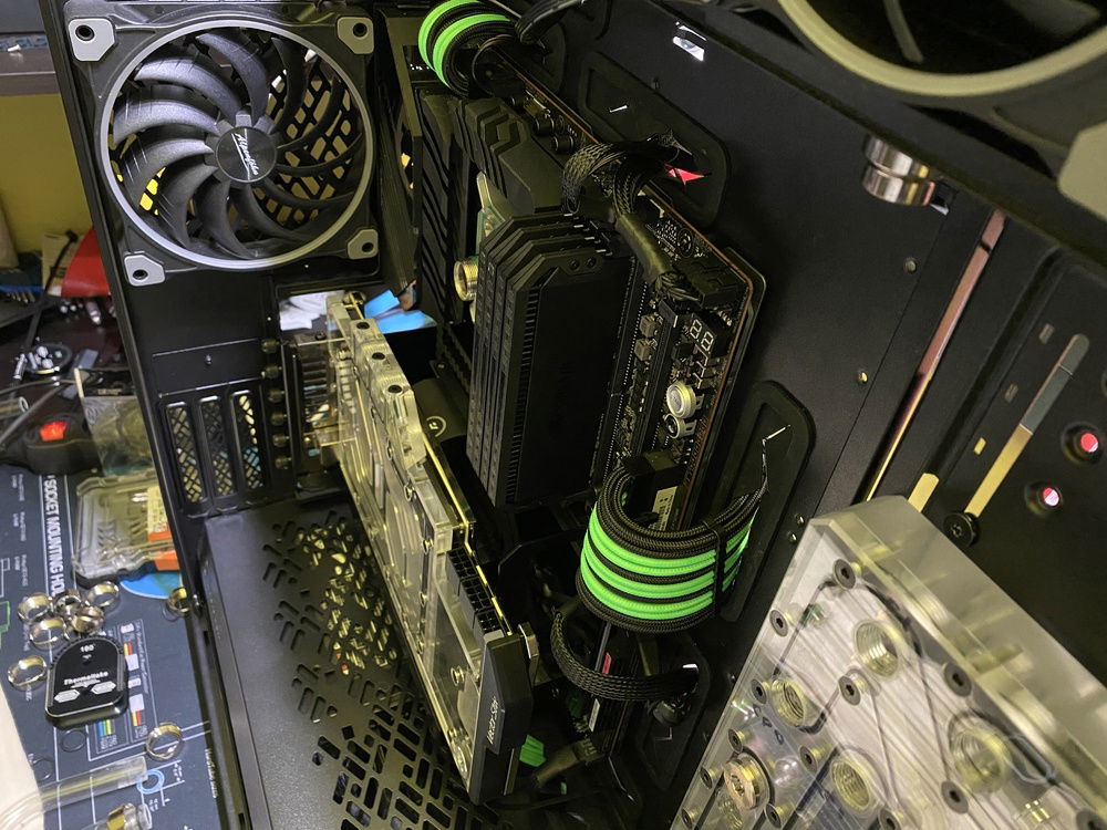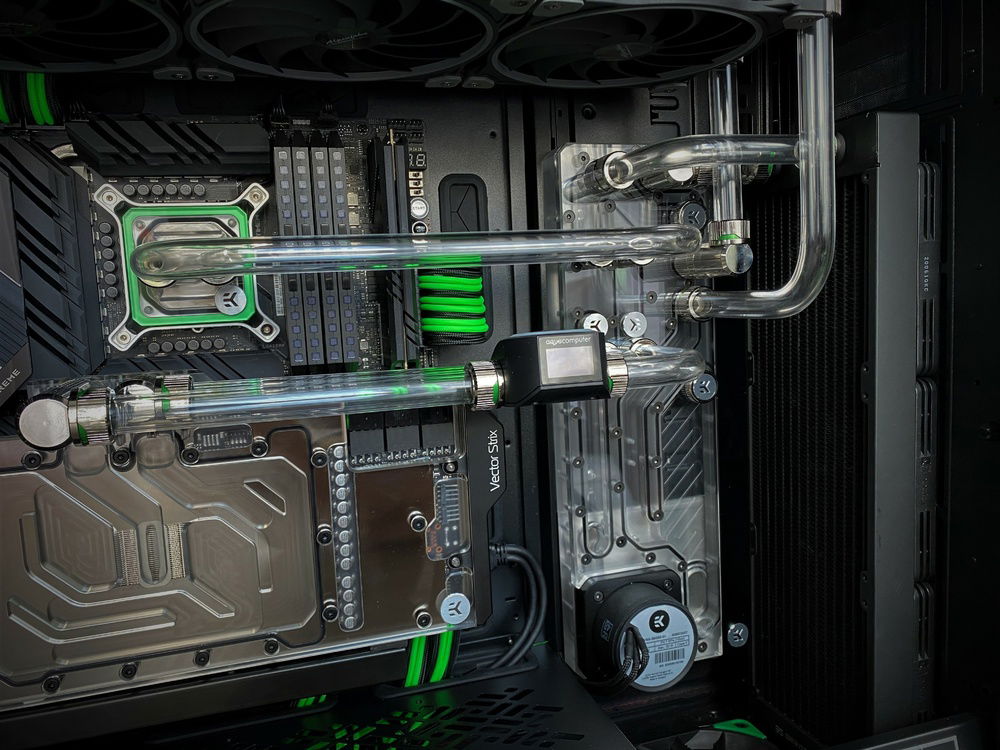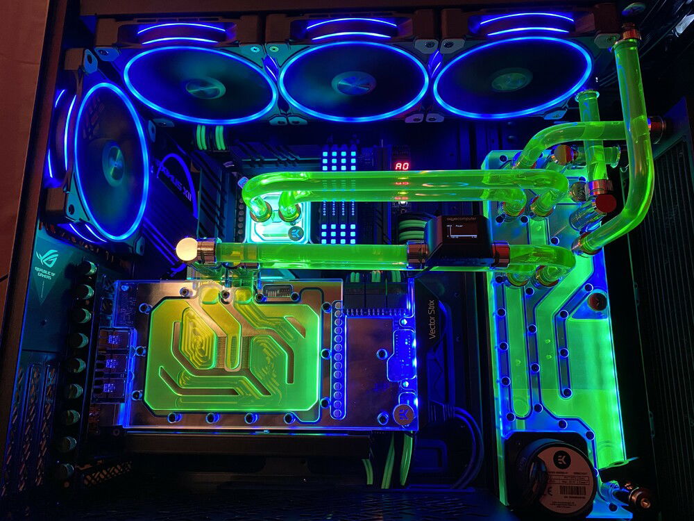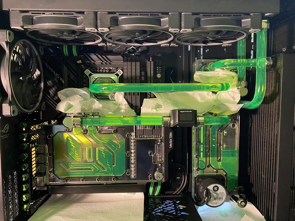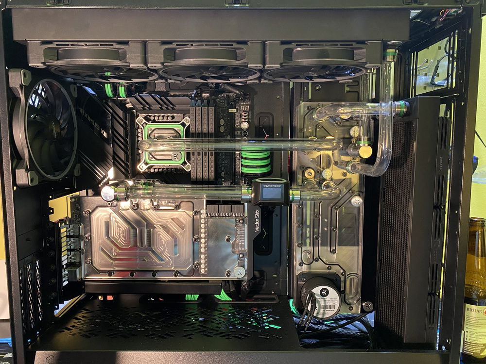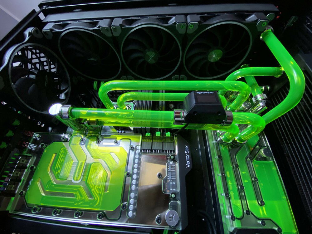 Lots of work, almost everything complete, still to do cable management, hard tubes and fittings cleaning etc. More information about the build and more pictures soon. Planning to use neon green coolant - EK Cryofuel or Mayhems XT Nuke.