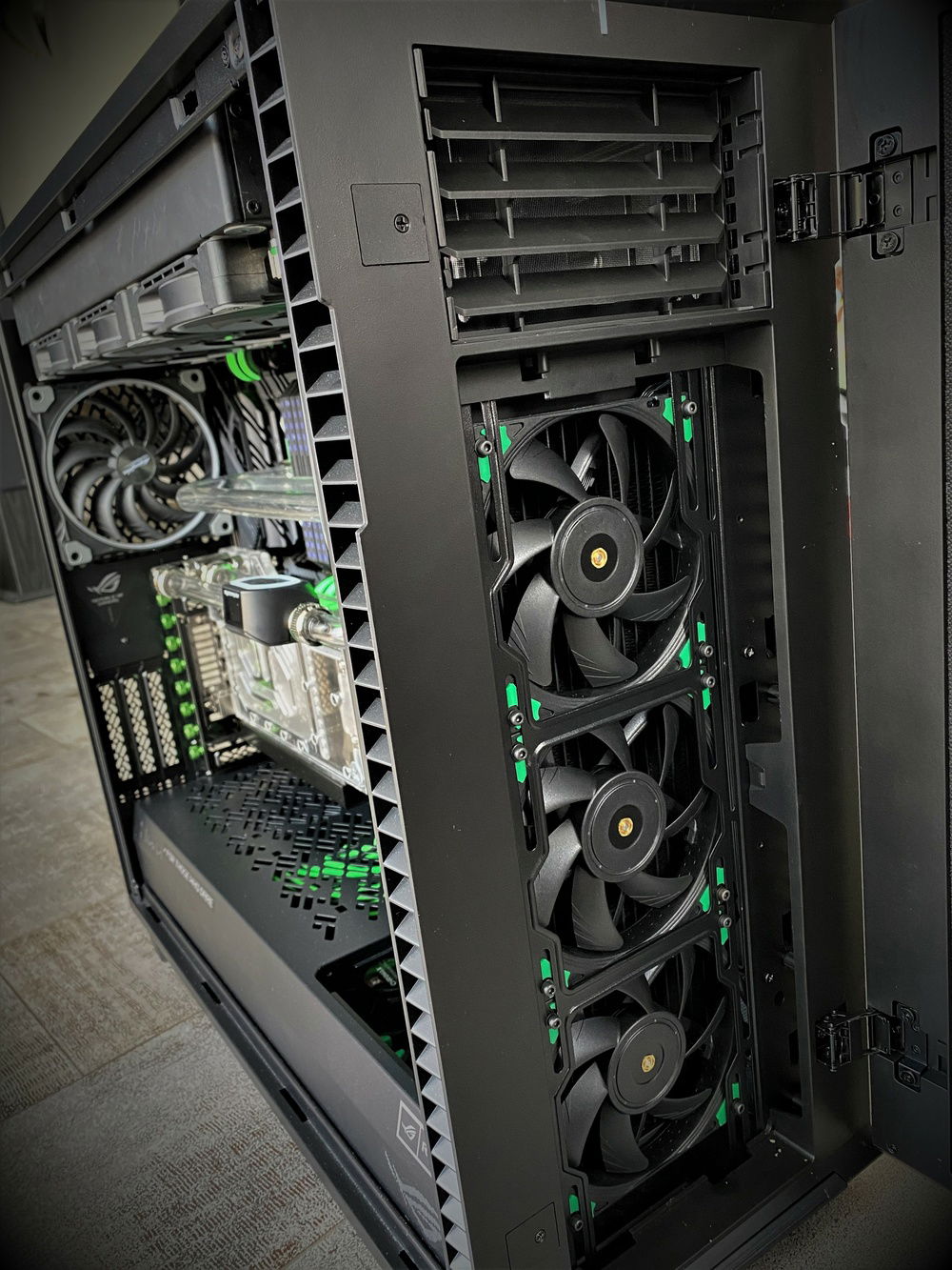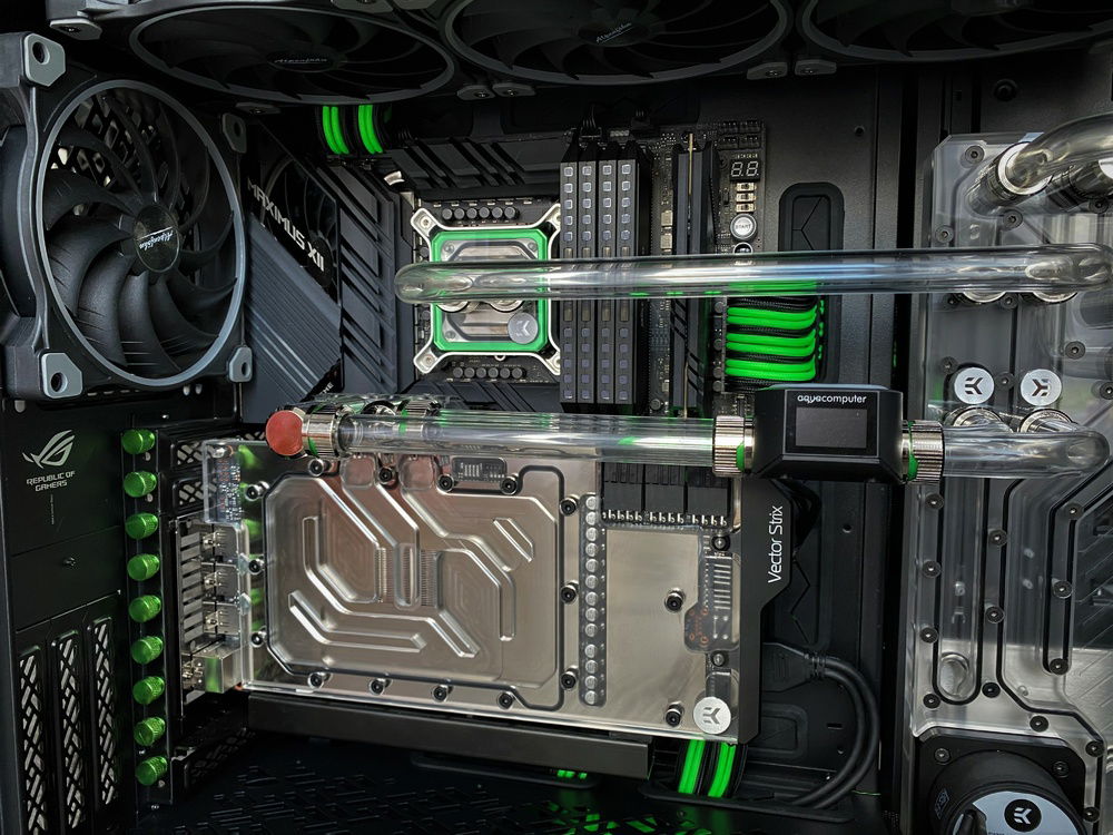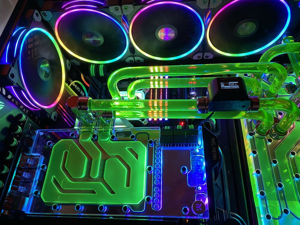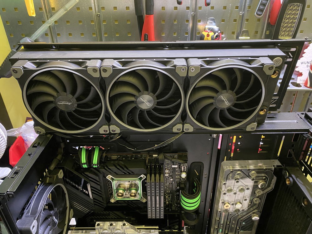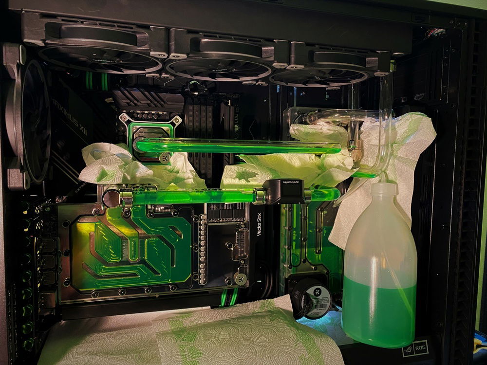Lots of work, almost everything complete, still to do cable management, hard tubes and fittings cleaning etc. More information about the build and more pictures soon. Planning to use neon green coolant - EK Cryofuel or Mayhems XT Nuke.