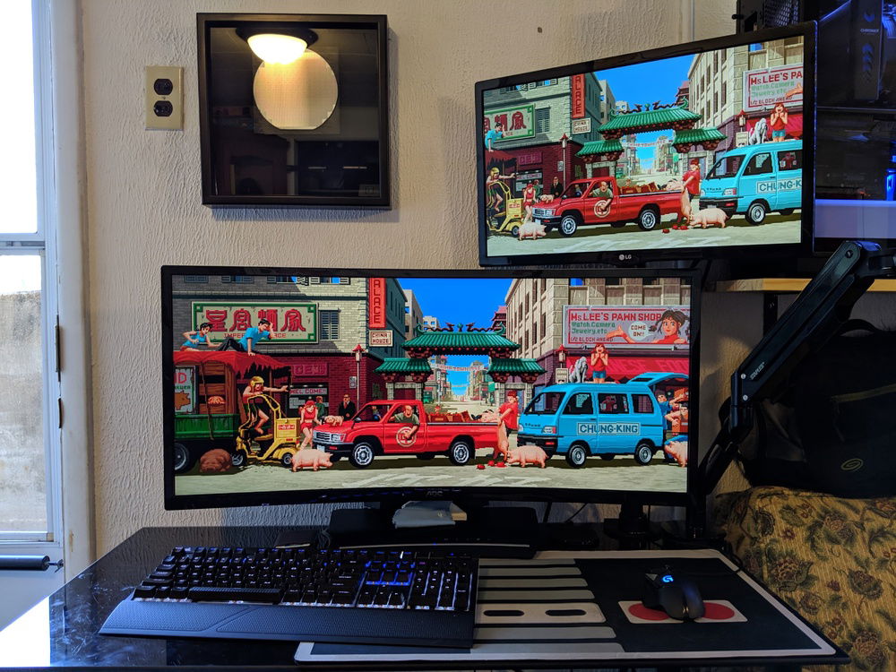 I have very limited space in my apartment. So, in order to keep myself from accidentally kicking my rig, I have mounted it to the wall above my couch.