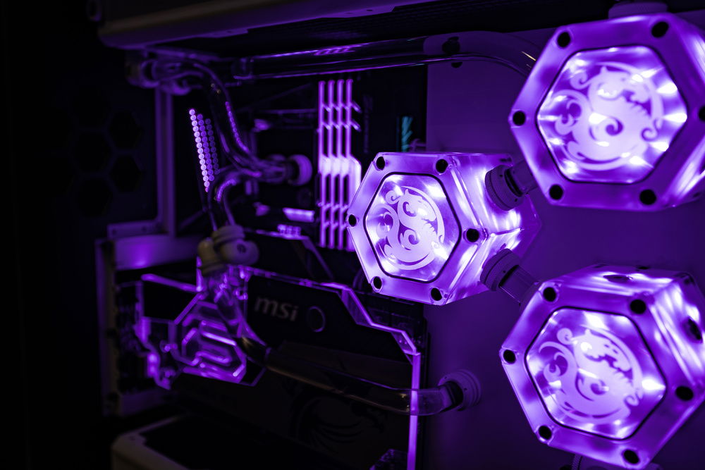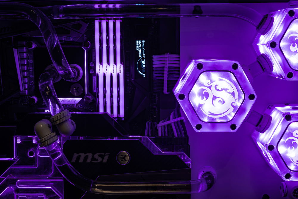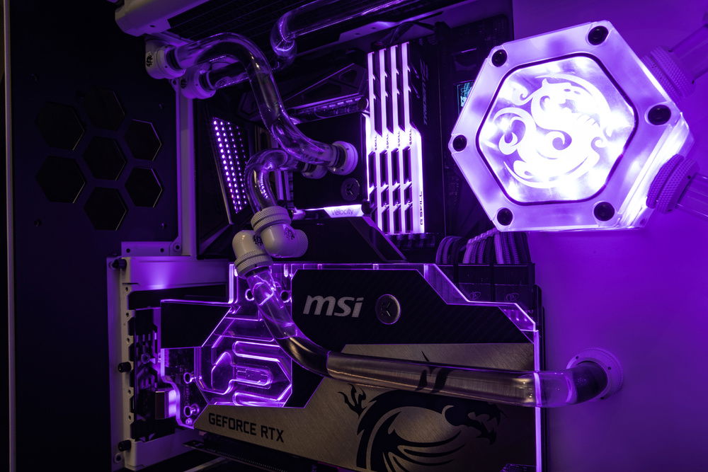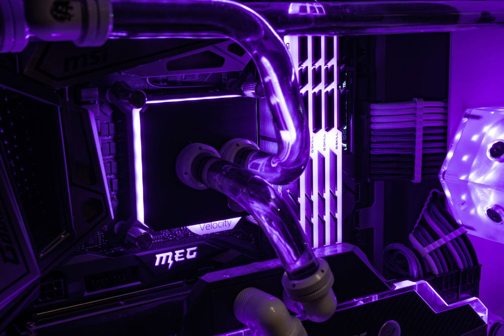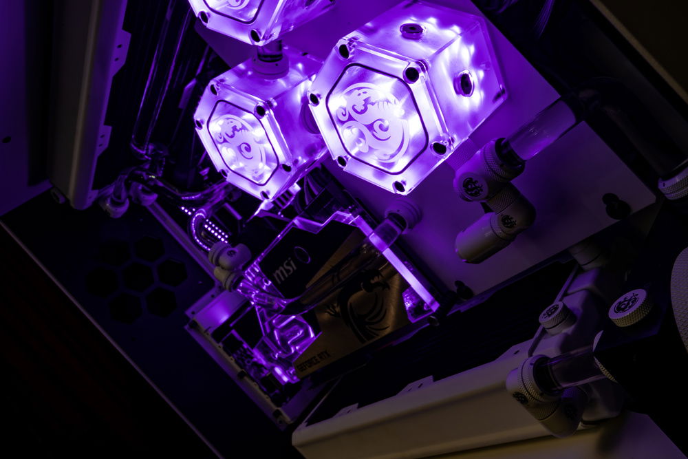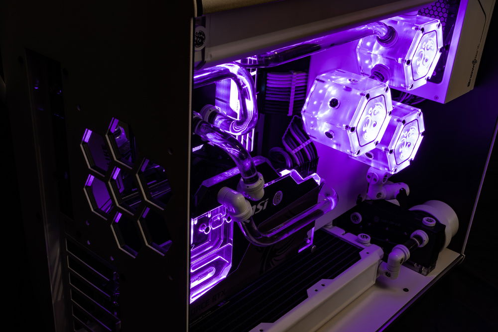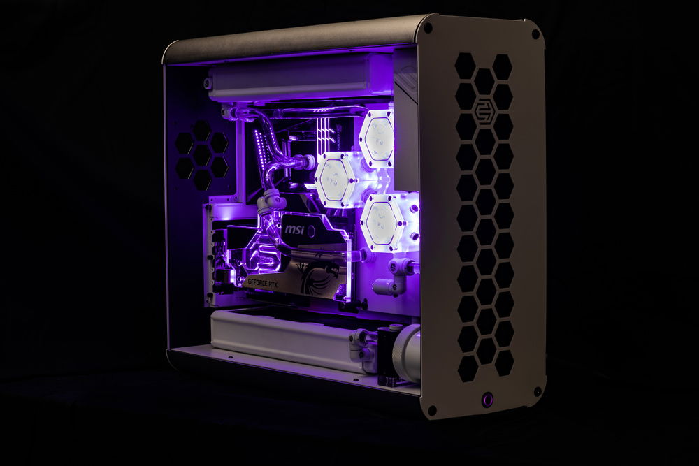 This is my second iteration of my Hexistential build using the fantastic Hex Gear R80 case. I wanted to do a vertical GPU build, however the Cable mod kit pushed the ridiculously huge Seahawk 2080ti too far into the Reservoir plate. So i tried my hand at some very light modding to support the vertical gpu and used the Cablemod pcie extender from the vertical gpu kit by itself which turned out really well I think!