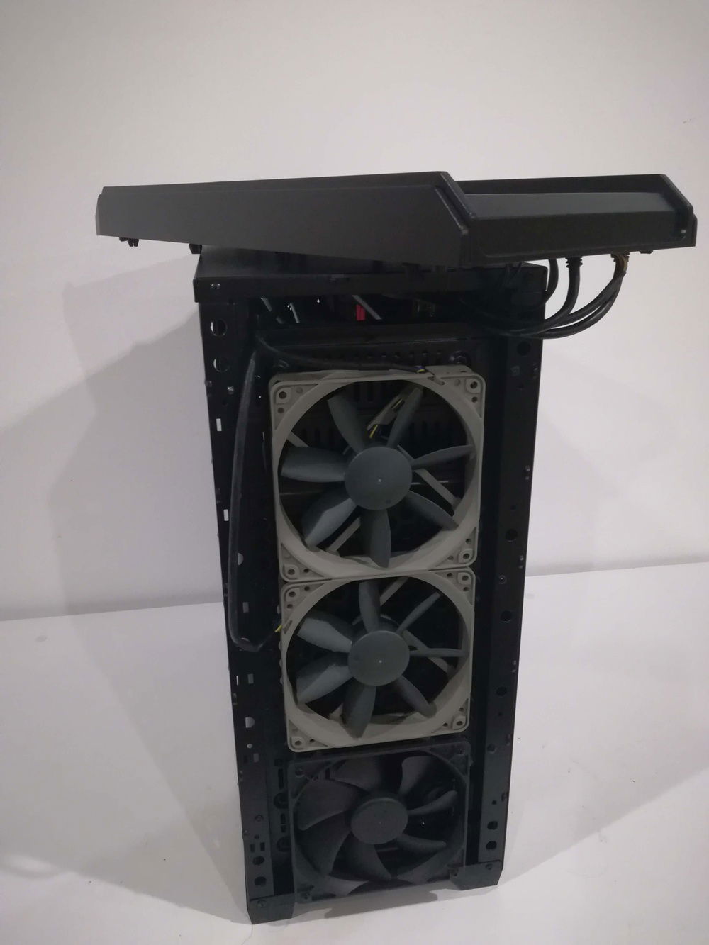 On the last one... the case kinda sucks. To mount the radiator and fans is a bit of a challenge. The long screws are not enough so I had to improvise. Also, I had to break one of the clips retaining the front panel filter, because the fan blades were hitting it.