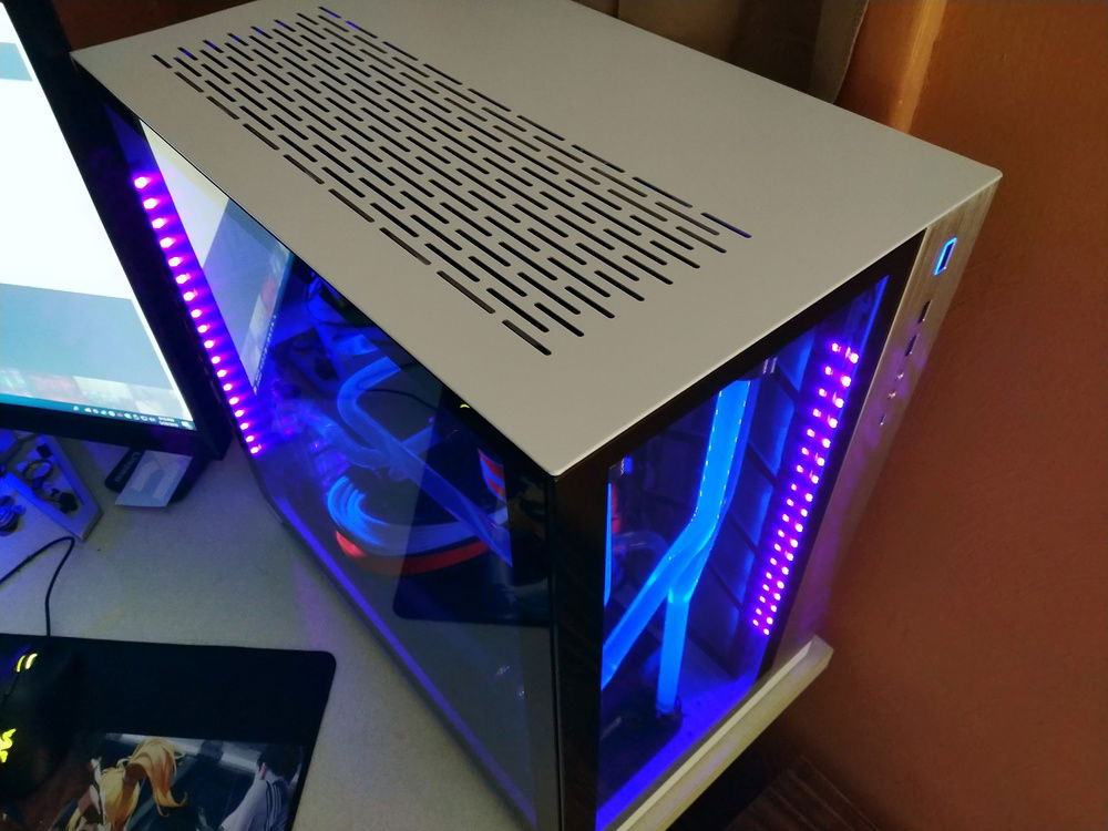 Parts list: Asus Rampage IV Formula Xeon E5 1650 V2 G. Skill Ripjaws Z 1866 CL8 16GB R9 Fury X (second)R9 Fury X 240GB SSD 1TB WD Black HDD Corsair HX1200i EKWB blocks for CPU, memory and GPUs EKWB dual DDC pump 2x 360mm radiators(top and bottom mounted) 6x Corsair ML120 fans PETG tubing from PrimoChill Coolant Reservoir custom made by myself out of acrylic sheets PSU cables custom sleeved by myself(no room for extensions) using MDPC-X sleeving from MOD-ONE