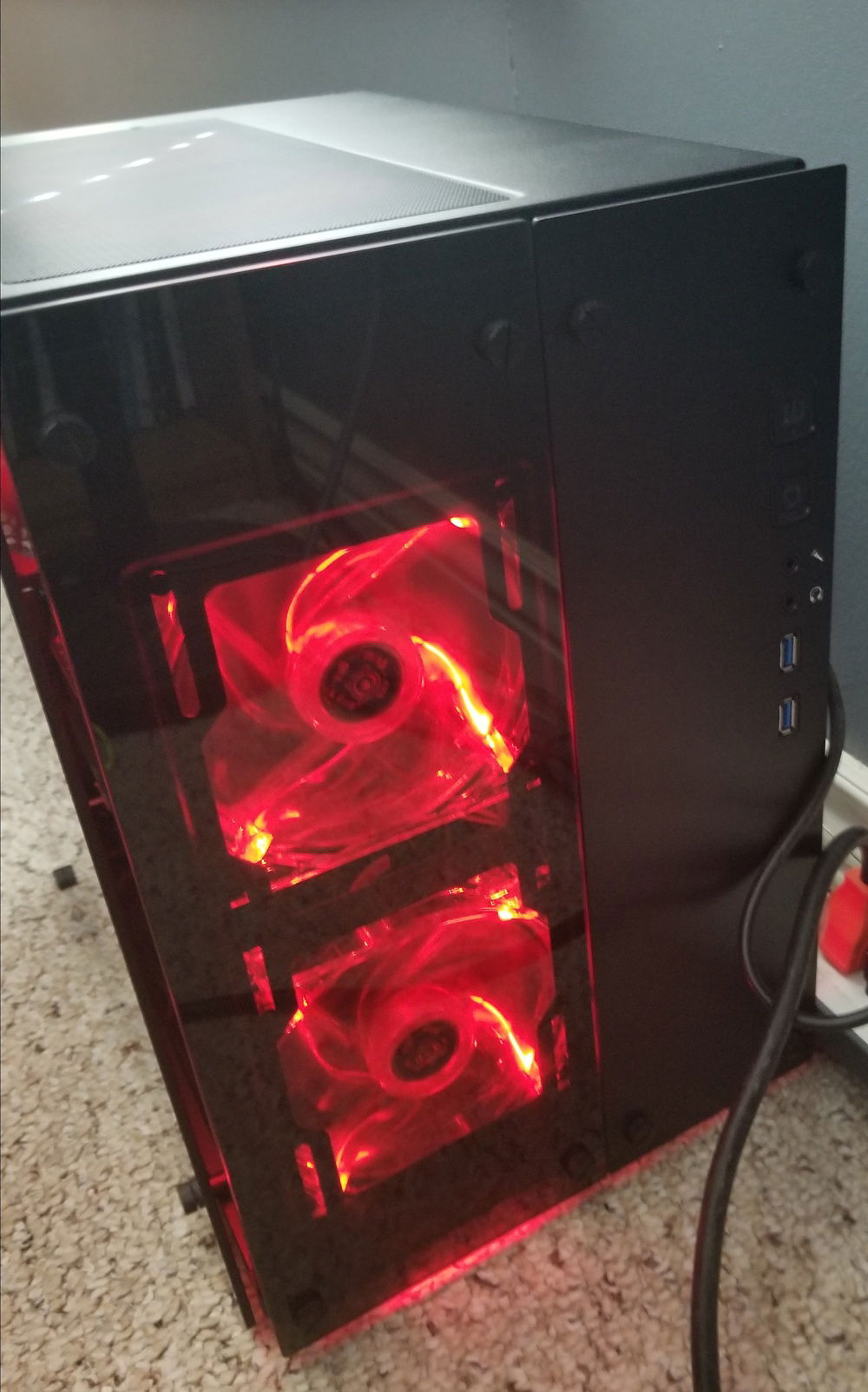 So with the new case I added red led silent fans 4x120mm hooked to fan speed controller.