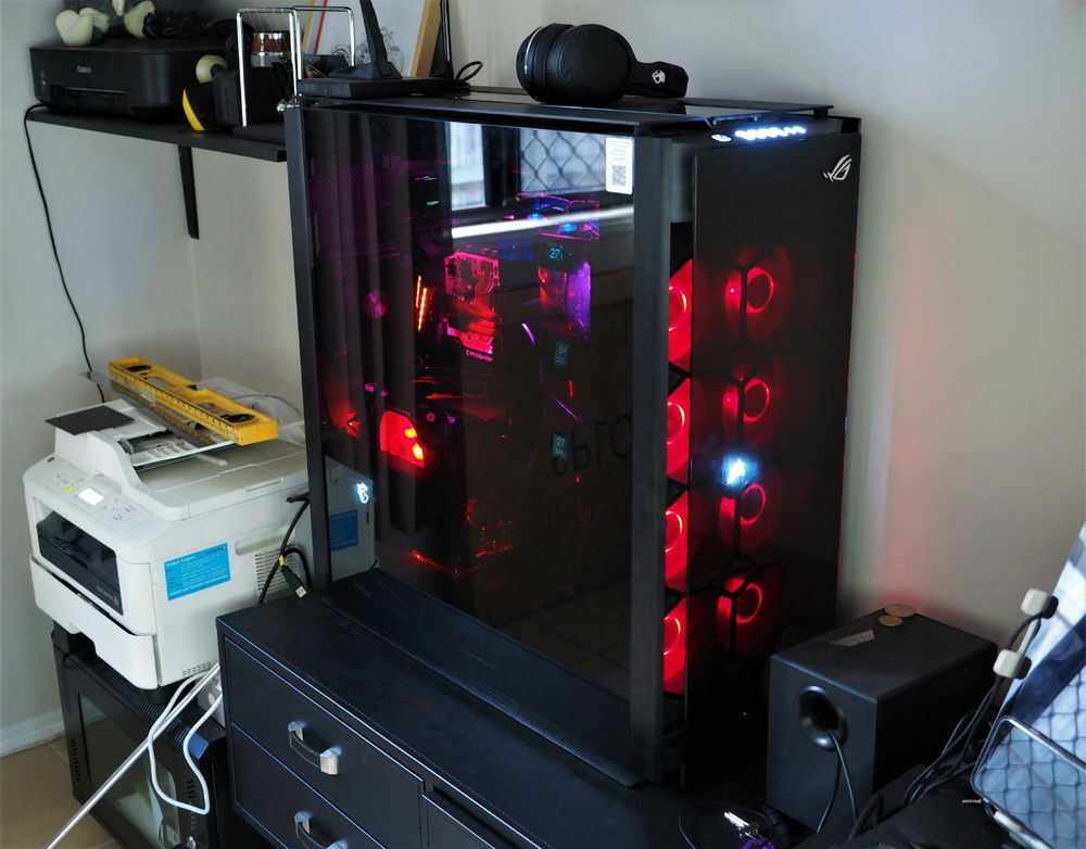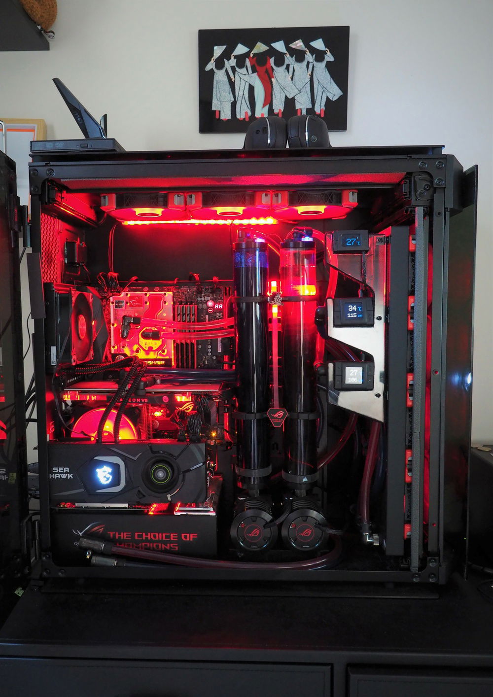 Named Hyponatremia (the medical term for a sodium imbalance caused by over hydration) due to a total overkill of liquid cooling. Completely unnecessary volume of water and radiator size for the cooled components. Slightly older build but never entered into a competition before. Hyponatremia is two systems built into the Obsidian 1000D and using Synergy to work as a single system so I can watch online content without compromising maximum gaming performance. EK components are used for the dual 4x120 radiators, mainboard block, graphics block and the majority of the cooling system hardware. Twin Thermaltake d5 pumps connected to twin 50x400mm reservoirs provide water supply and pressure. Main system all AMD with the the mini system AMD/NVIDIA.
