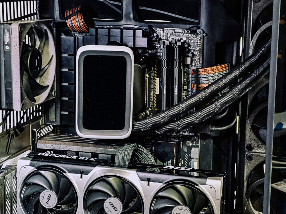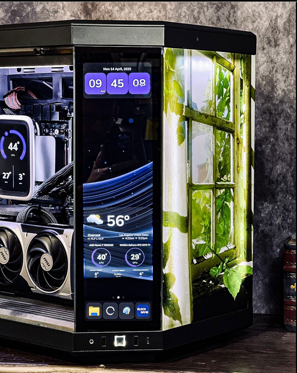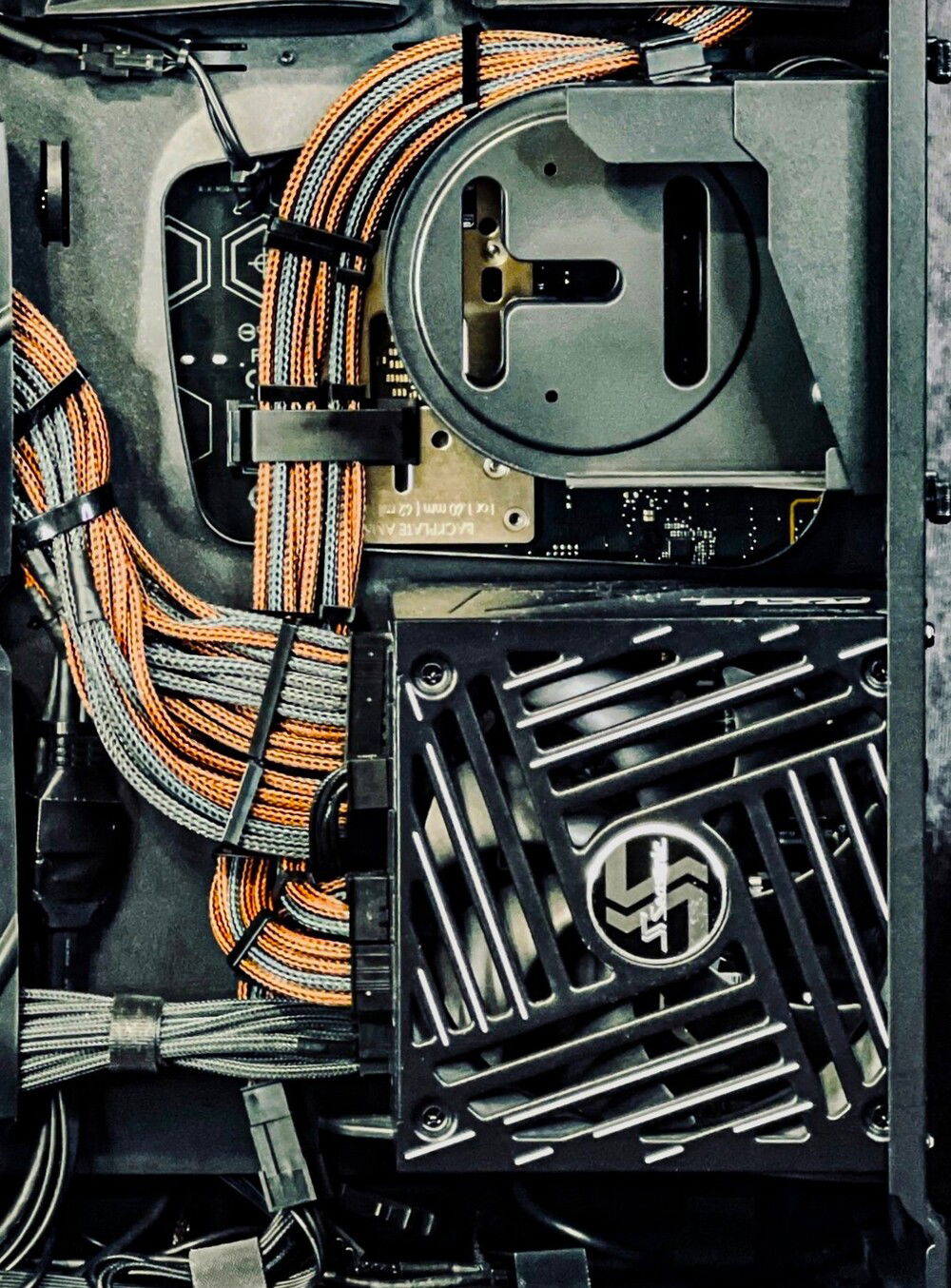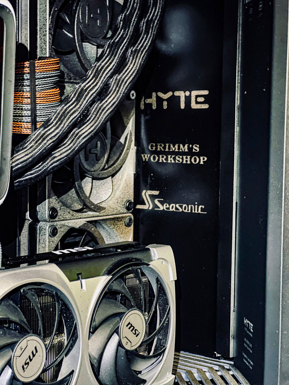 This was my latest commission, and first sponsored build. This was a collaboration with fellow builder Techside , who did all the planning and outreach. Hyte provided the Y70 Touch Infinite case, FP12 fans, and their new THICC Q60 AIO (which I promptly disguised as a Q80 😅); Seasonic was kind enough to send us their new Focus ATX 3.0 PSU. I couldn't have done this without all their help.