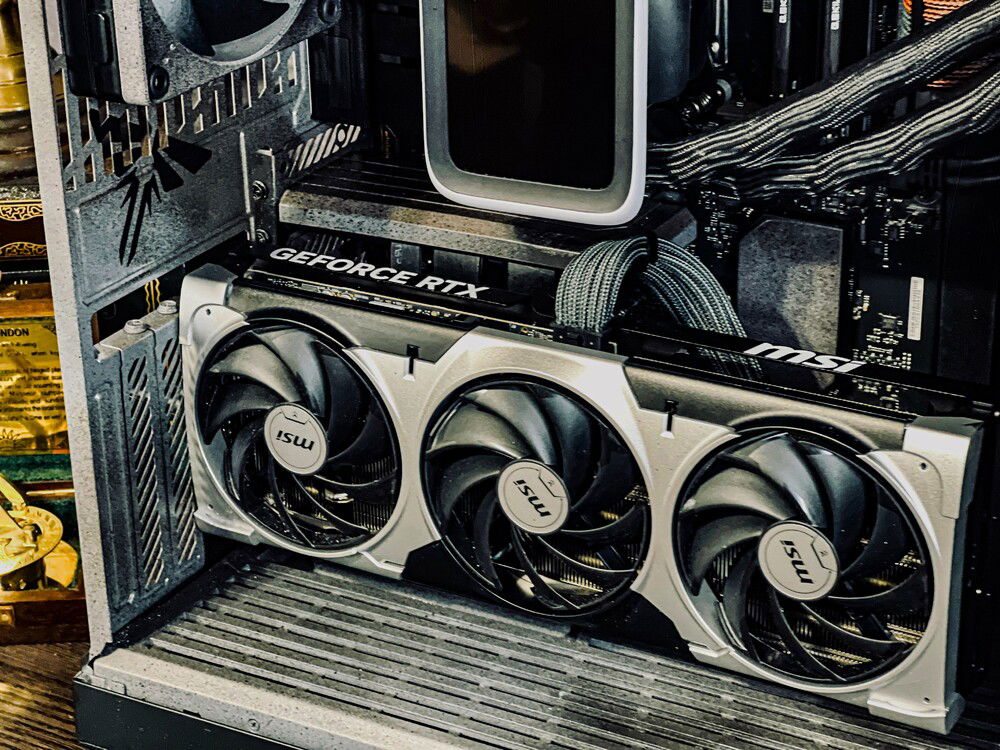 Fittingly, the build's theme was The Last of Us. The mods are extensive, including painting the case interior, AIO, and the fans, hiding branding on the board, and custom cables. The side glass is a translucent vinyl decal with LED backlighting - the window is from the menu screen of the game, and was a client request.