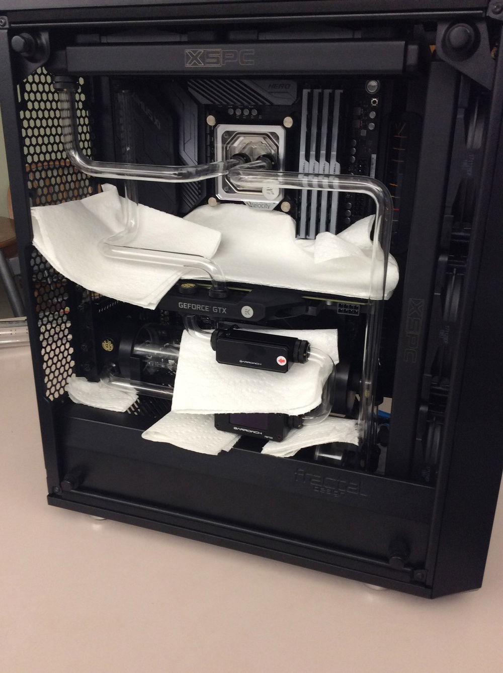 The longest part of the build was definitely the water cooling loop.
