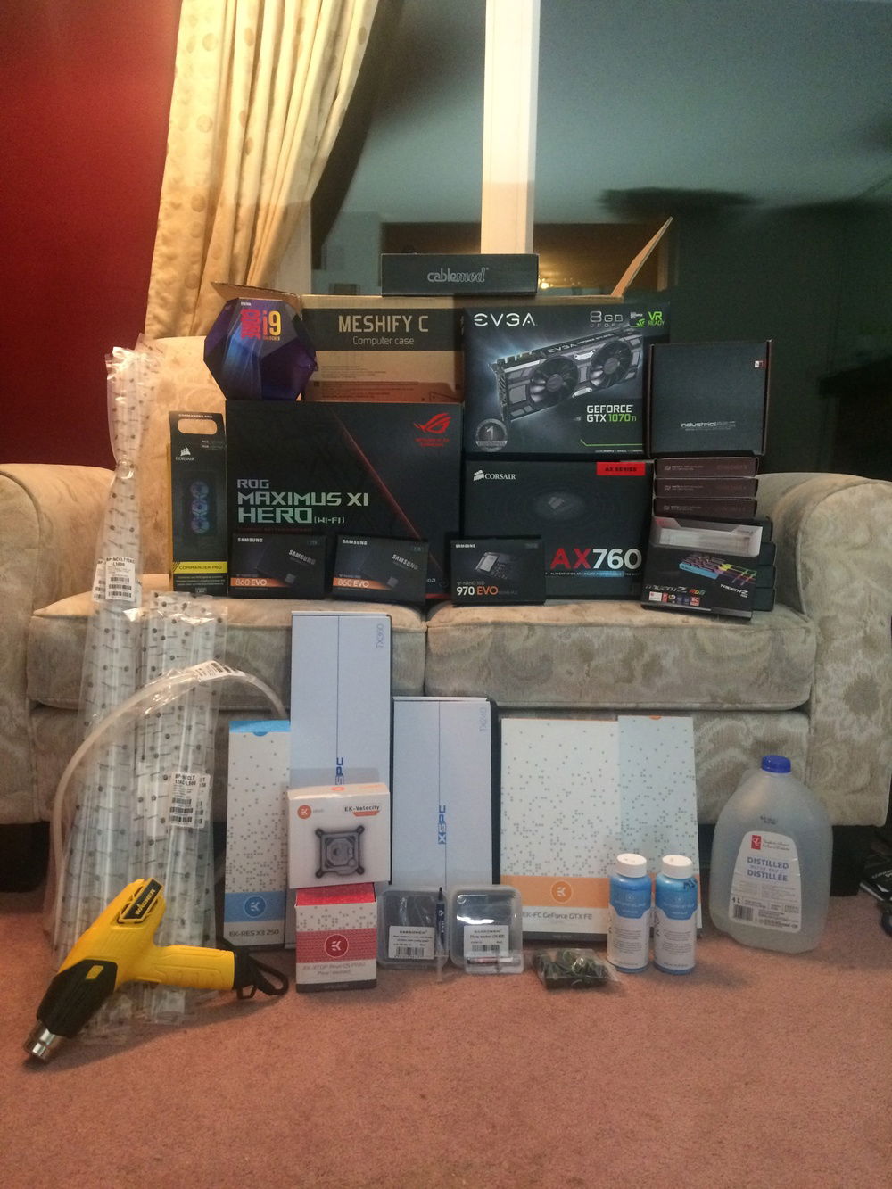 The bulk of the computer parts were ordered on Black Friday, with 2 additional orders in December. I wanted all the components before Christmas so I could finish building it and maybe actually use it during my holidays. The whole process took longer than expected, and my first boot ended up being on new years eve. So naturally I was benchmarking through the night into the new year.
