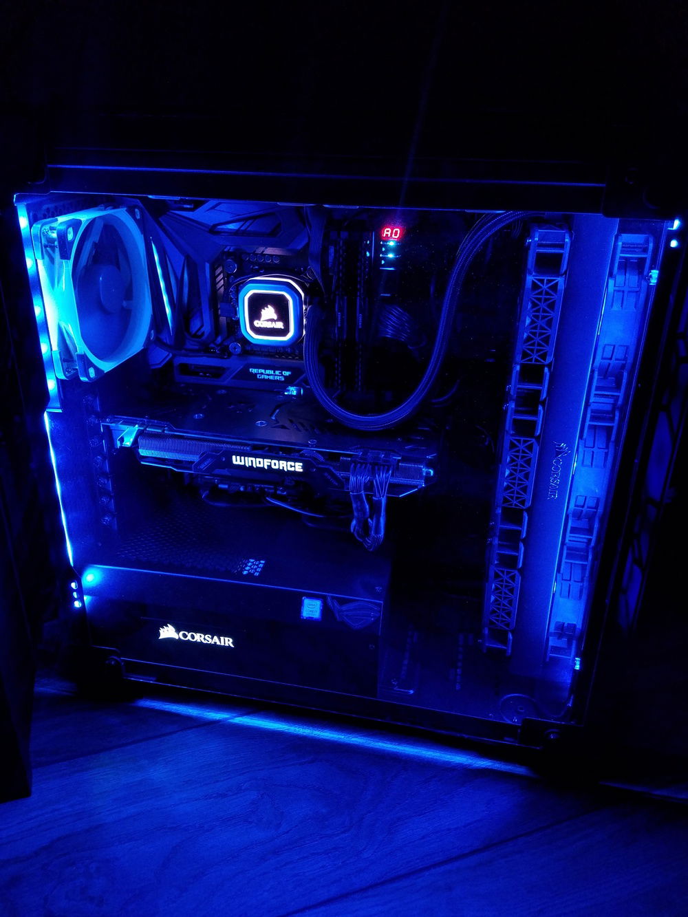 8700k @5ghz cooled by a triple radiator, 16 gigs of ram, and a 980ti! it all runs a 144hz screen, ultrawide, and a tv from 2005 that's not even 720p