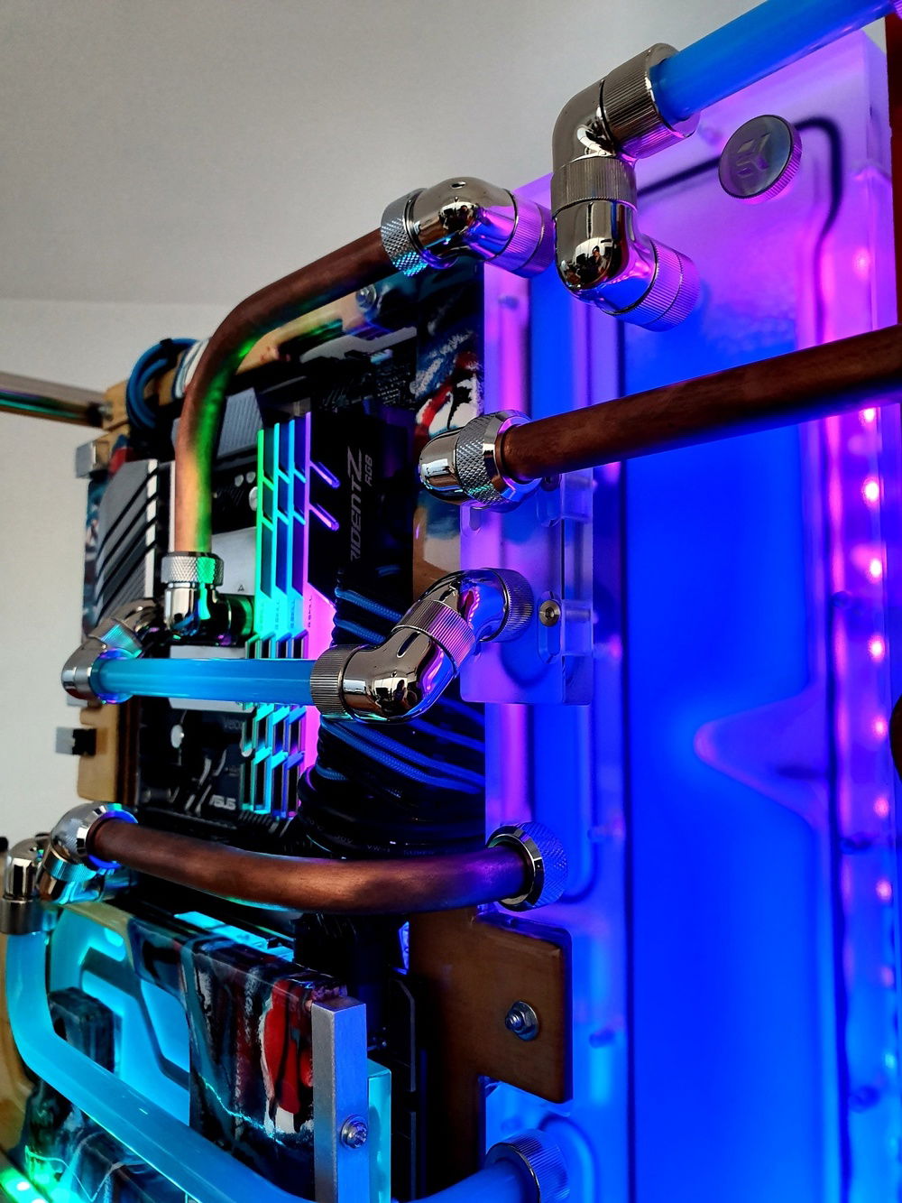 I love water, bright colours and industrial looking modern apartments. I decided that would be the theme for my build. A friend had recently completed a very clean build and he introduced me to the wonders of distribution boards. Sure I'd seen them before but I had never considered them for my systems. I found Bykski made a distribution board for the Core P5 and I decided to go ahead and include one in my build. The idea of a central and slim reservoir appealed to me a lot. I also set my mind on the colour of the liquid I would use - Azure blue (EK).