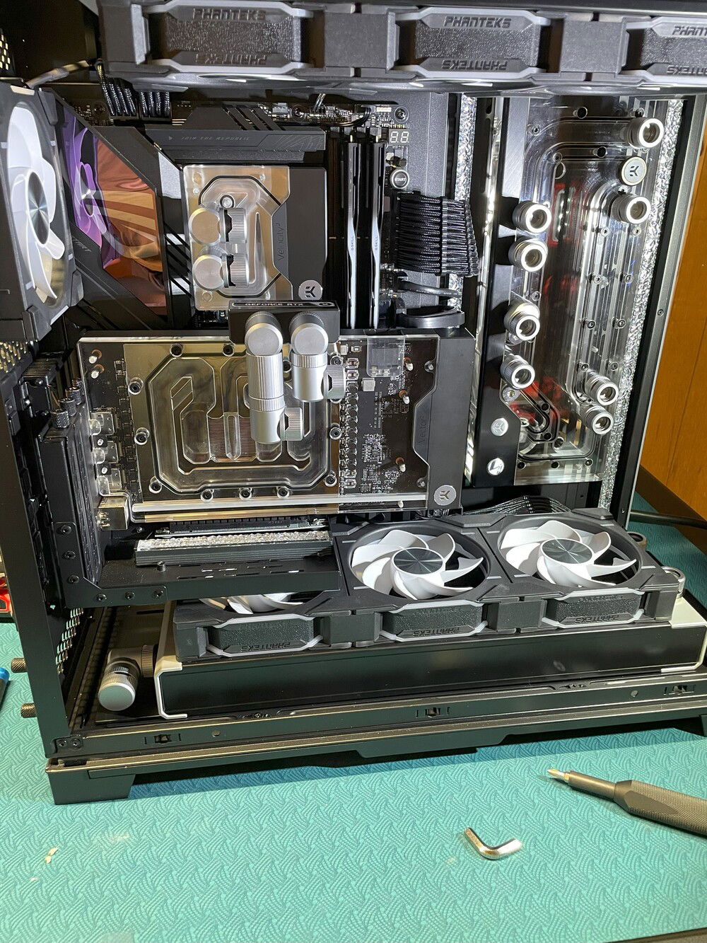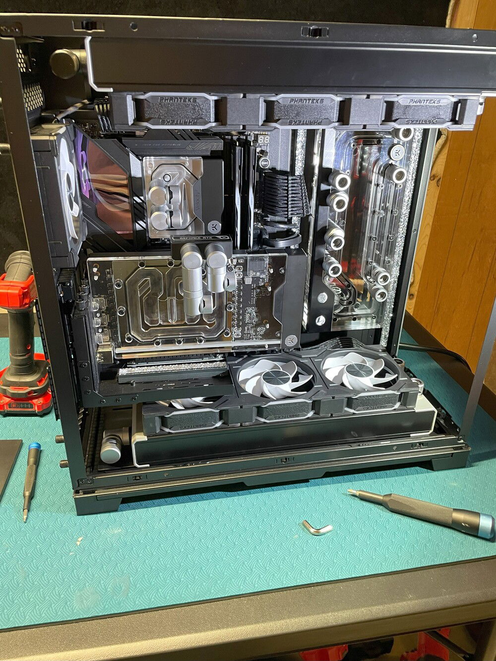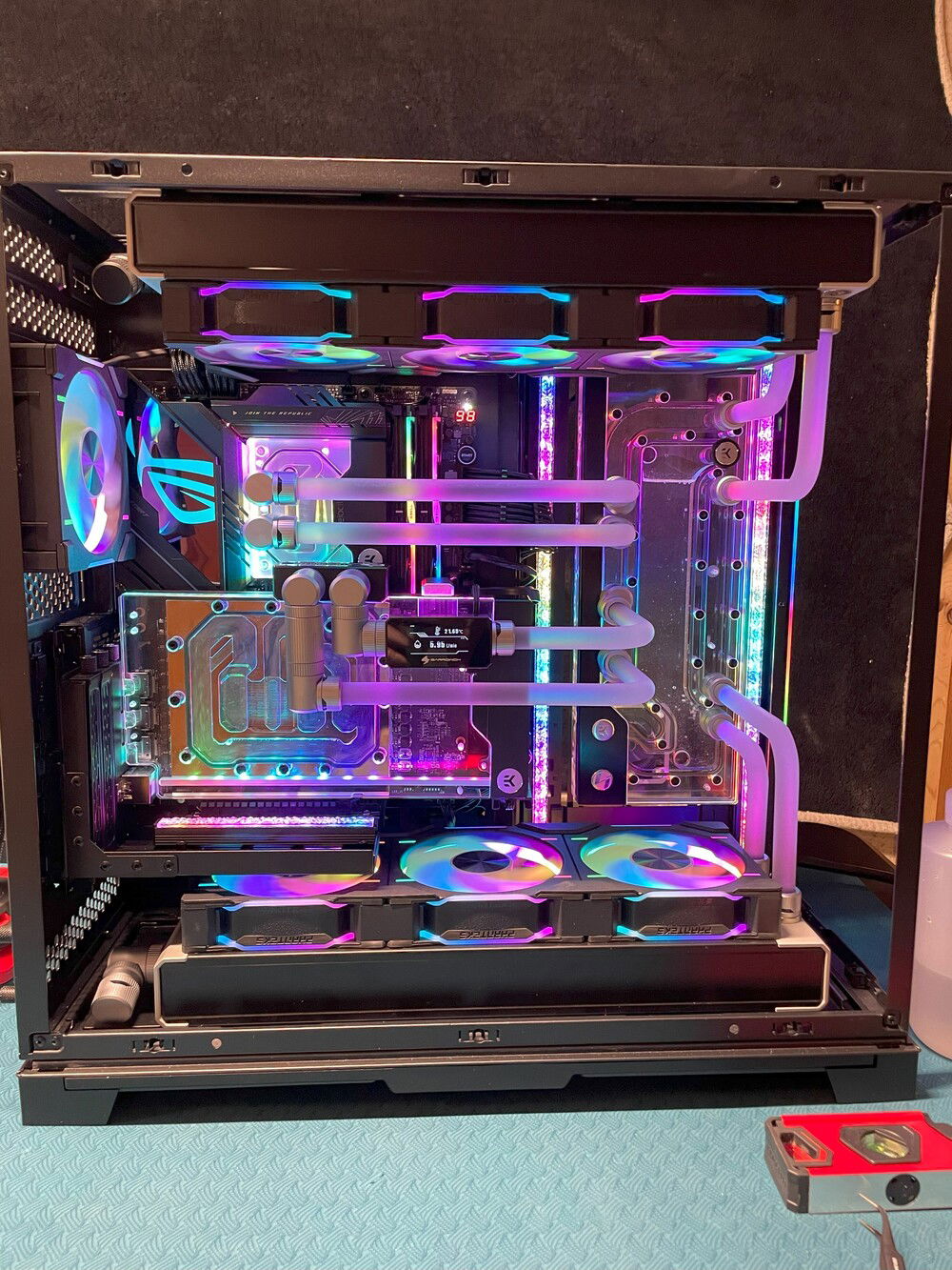 I wanted to play on the best and I hadn't built in a Lian Li case for myself yet so I took the plunge. I used an older EKWB Lian Li distro plate but other than having to finesse some hard lines to line up it was a pleasure to build in. It's got all the top end parts. I couldn't justify a 14900k so I went with the 13900K since I had one from a previous build. I also wanted to have the vertical GPU which I wasn't able to make happen on my last build.