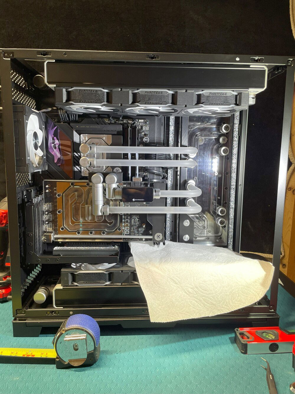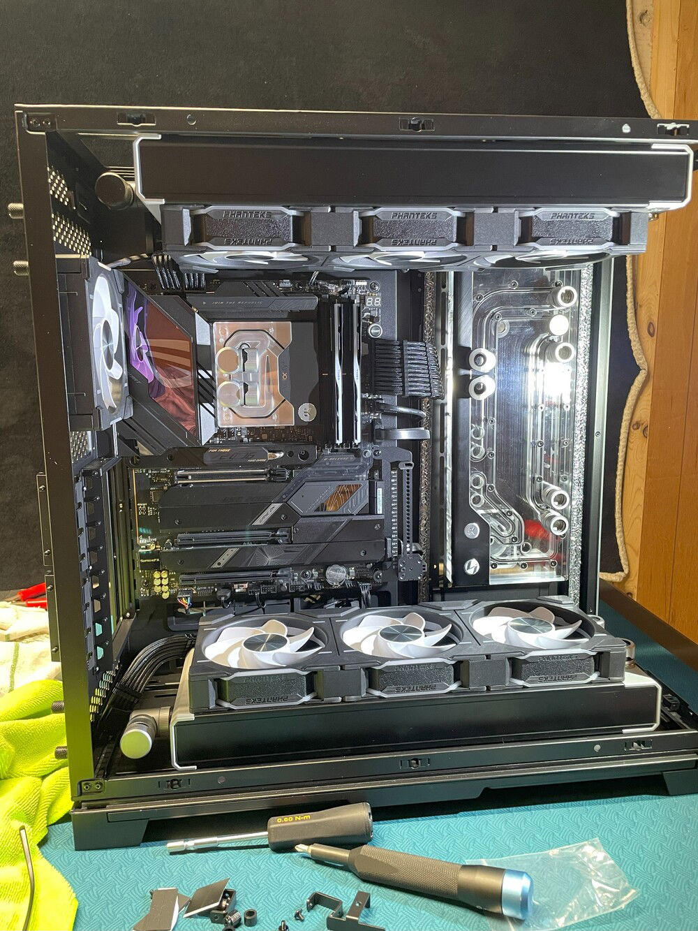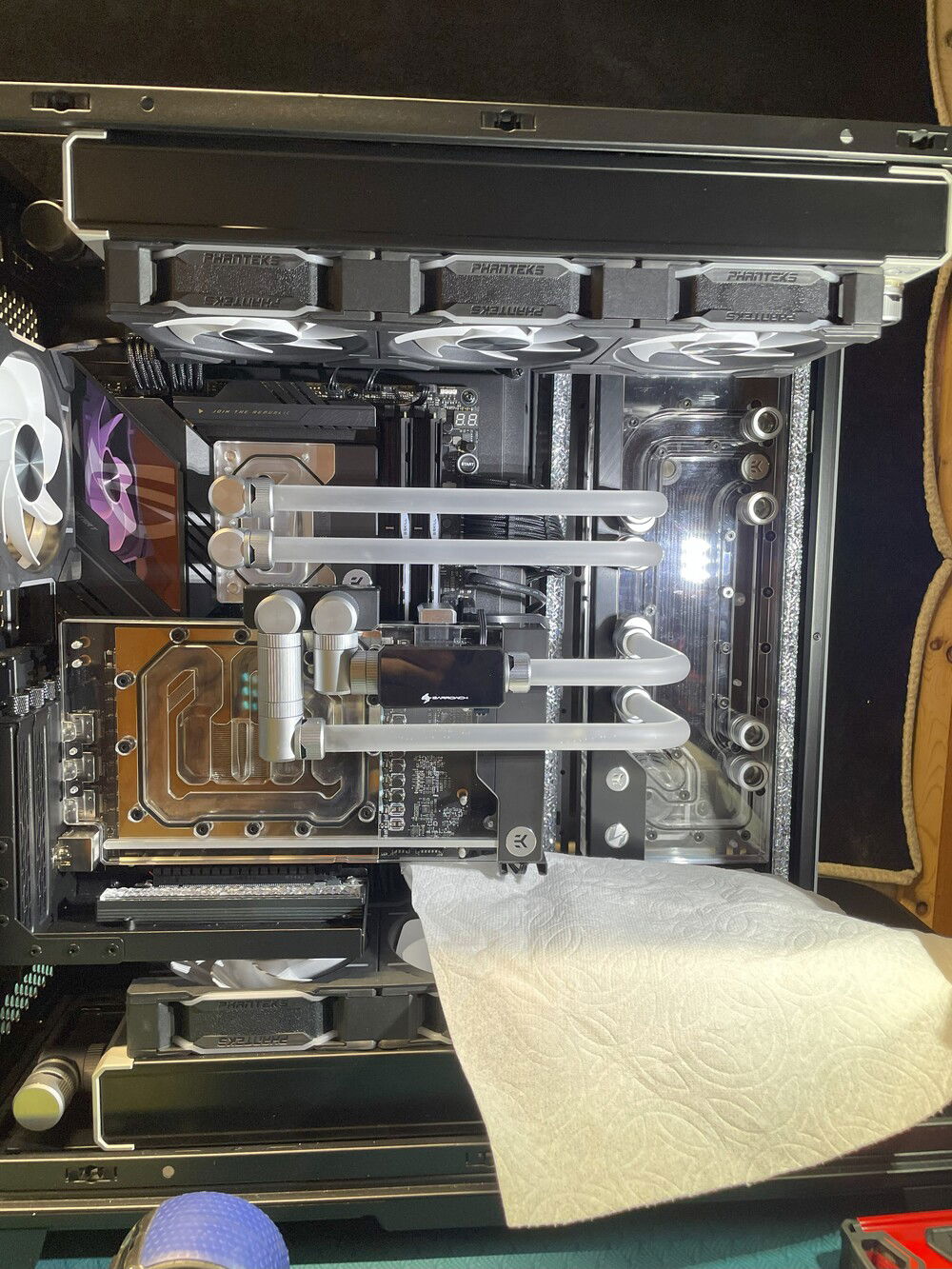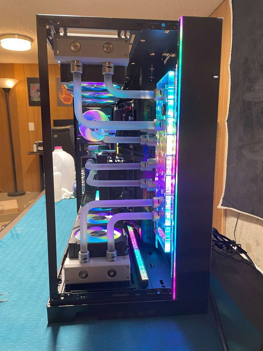 I wanted to play on the best and I hadn't built in a Lian Li case for myself yet so I took the plunge. I used an older EKWB Lian Li distro plate but other than having to finesse some hard lines to line up it was a pleasure to build in. It's got all the top end parts. I couldn't justify a 14900k so I went with the 13900K since I had one from a previous build. I also wanted to have the vertical GPU which I wasn't able to make happen on my last build.