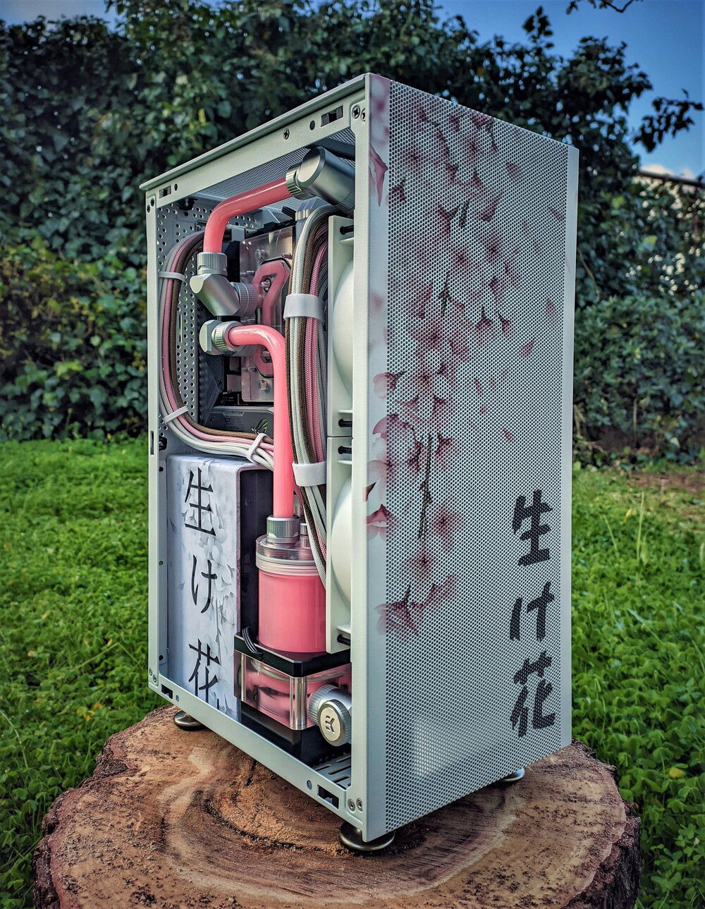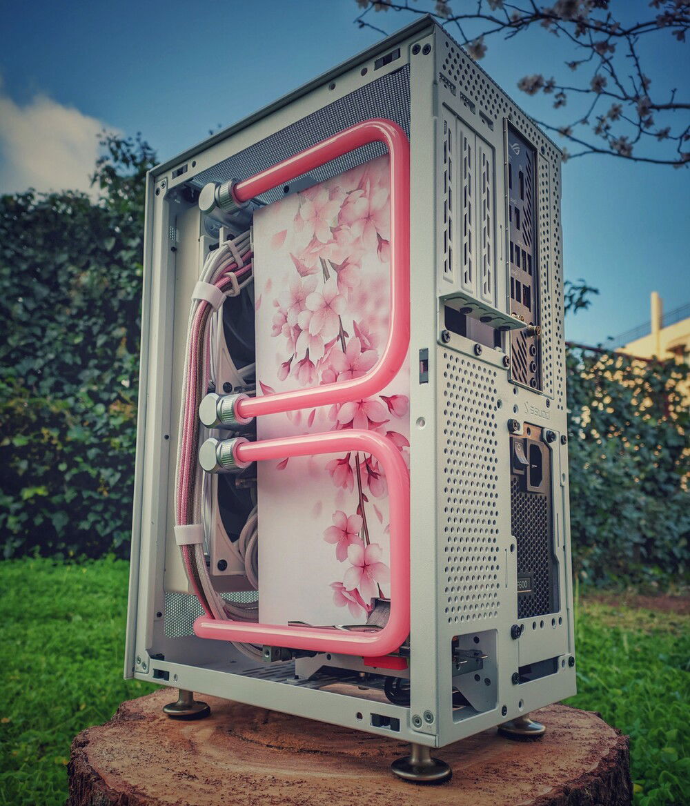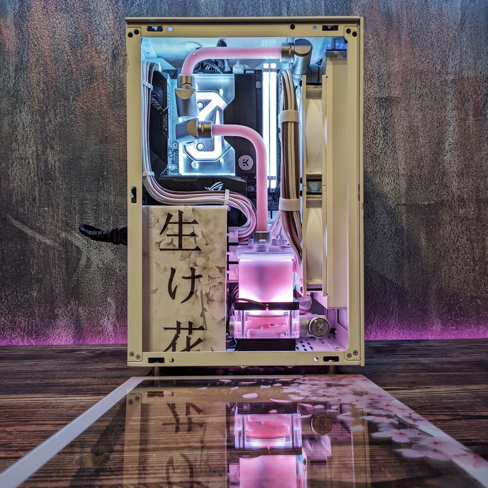 This is the Ikebana project a mini itx build full watercooled!The special thing that makes it unique is the uv printed panels!Not a vinyl or a paint but a direct uv print.Credits for the panel design and print goes to