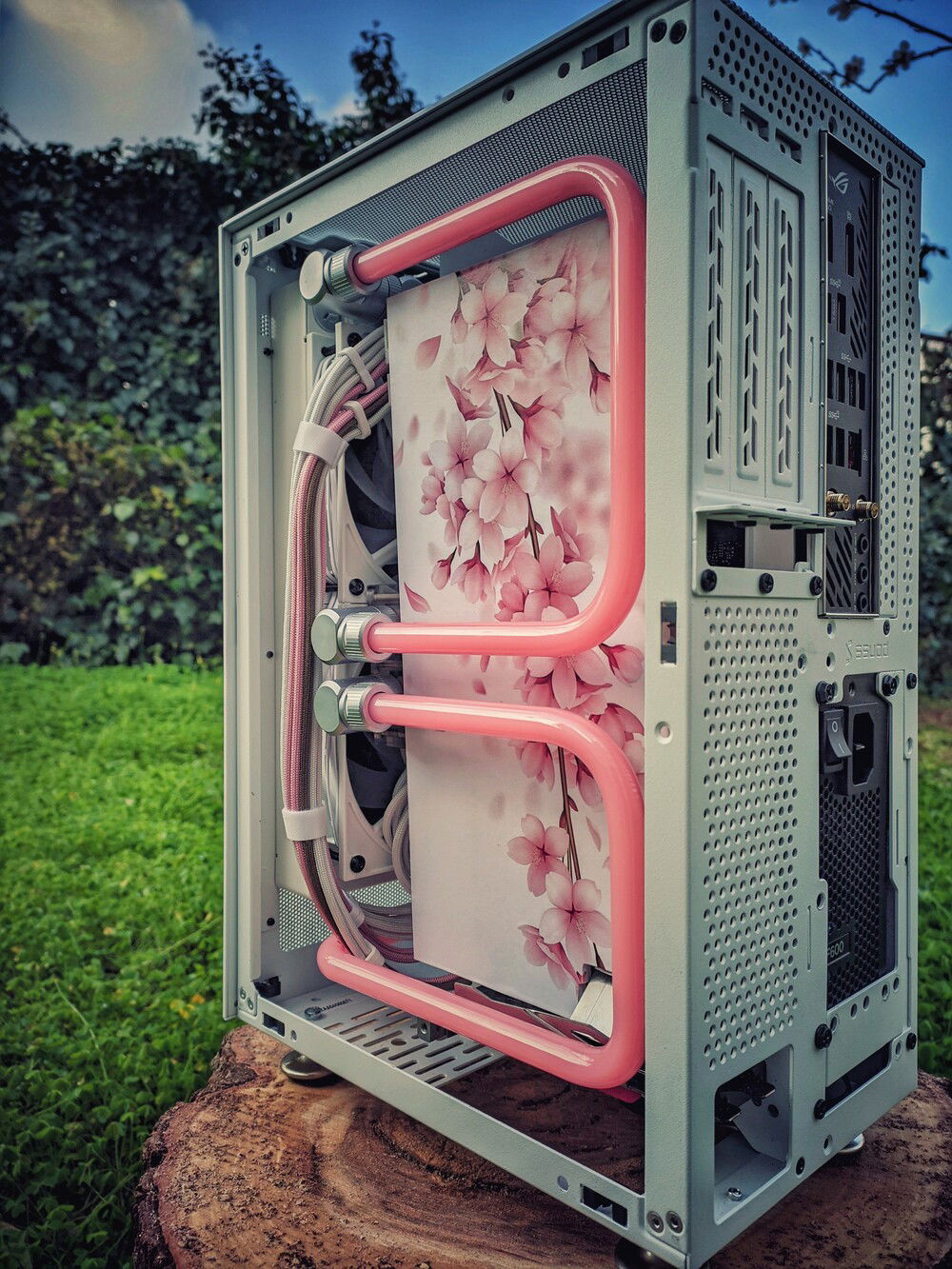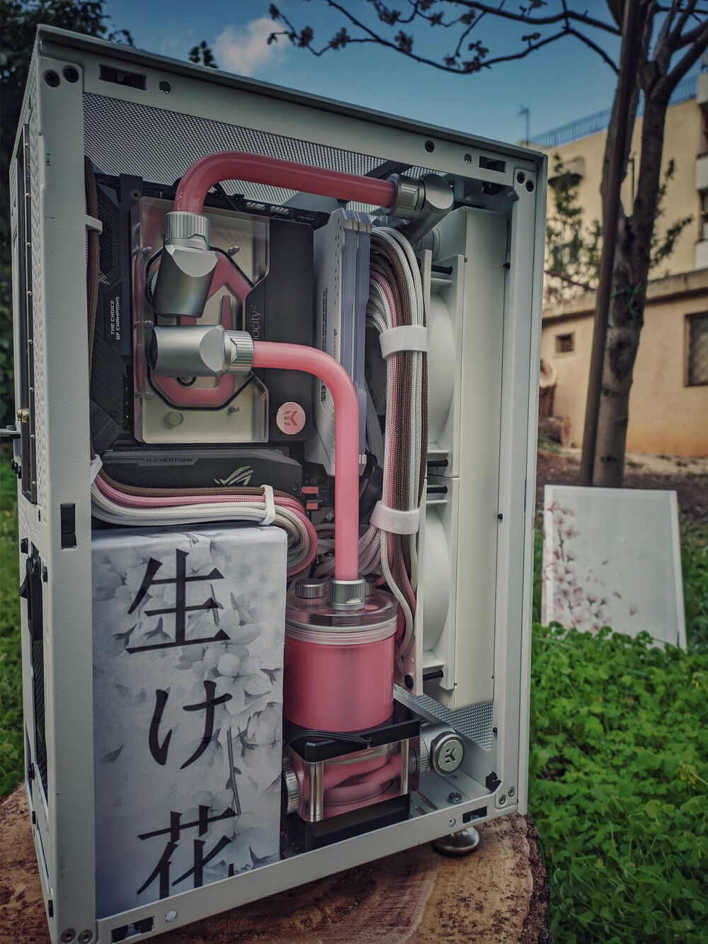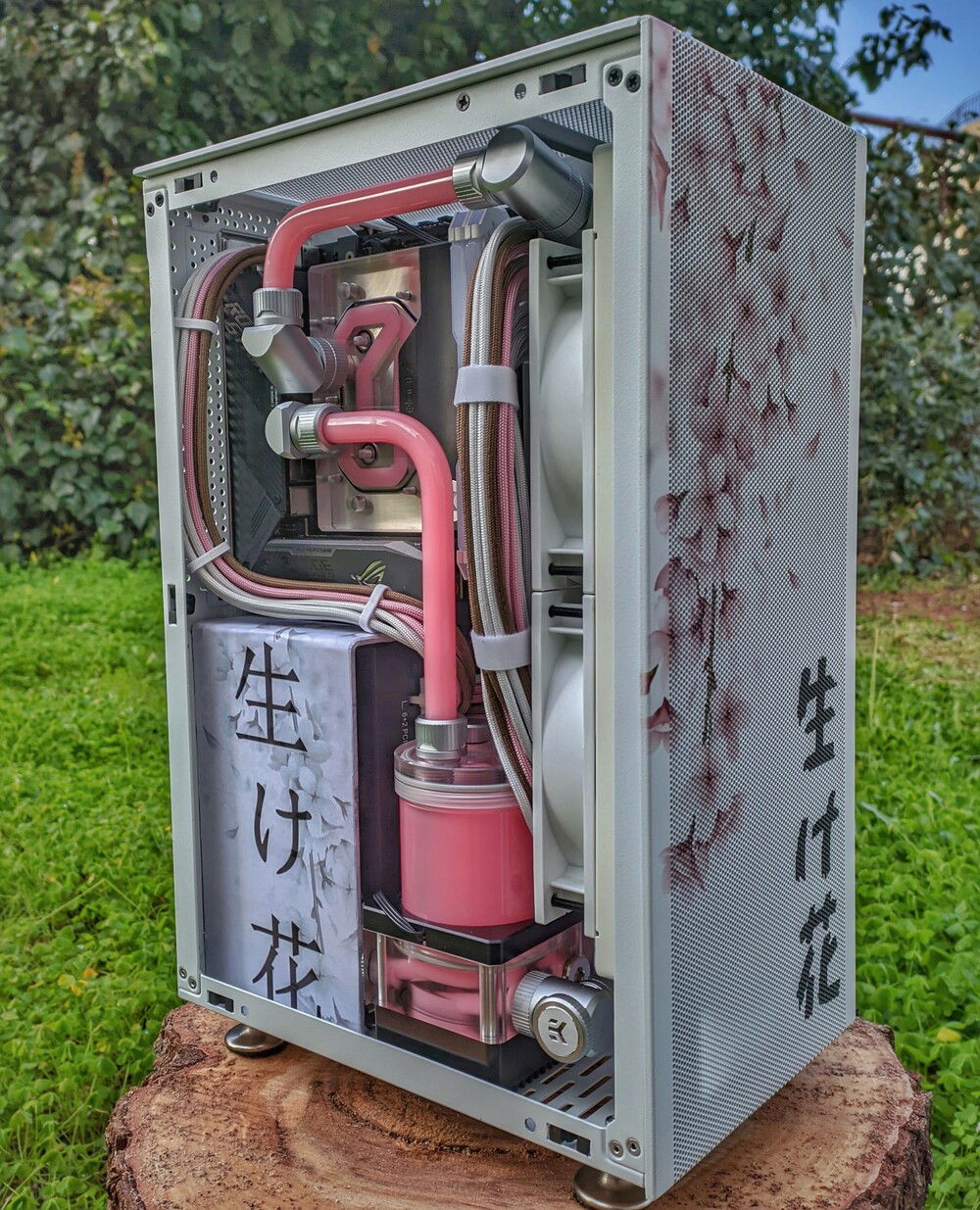 This is the Ikebana project a mini itx build full watercooled!The special thing that makes it unique is the uv printed panels!Not a vinyl or a paint but a direct uv print.Credits for the panel design and print goes to