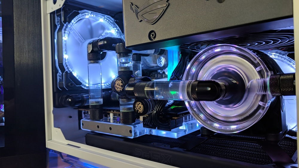 Complete with front tempered glass panel installed. I cannot tell you how hard it was to fit a complete custom water cooling setup into the A1 with a full size D5 pump. Hence the name Impossibilium!