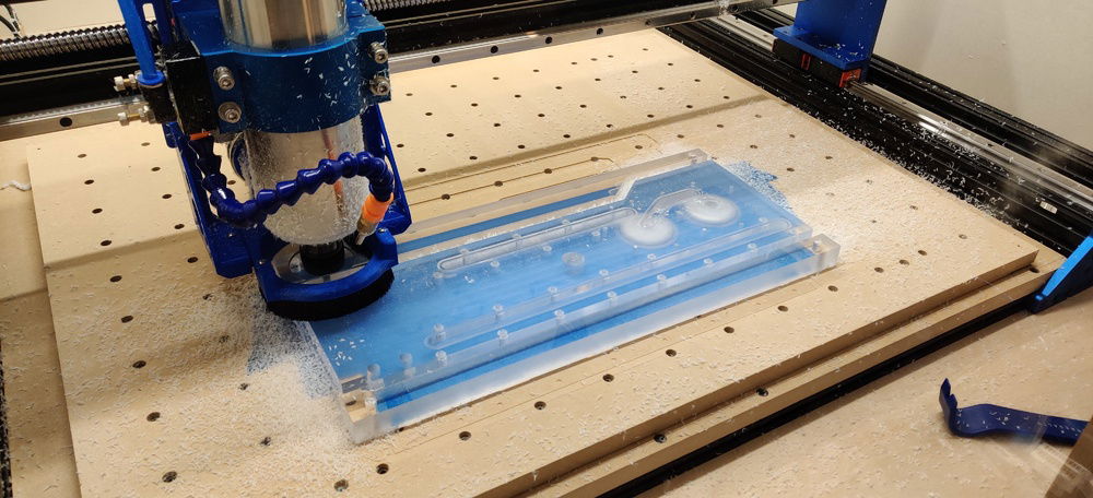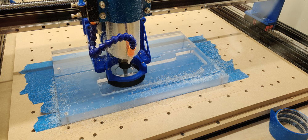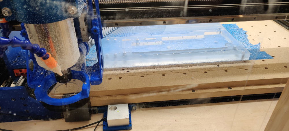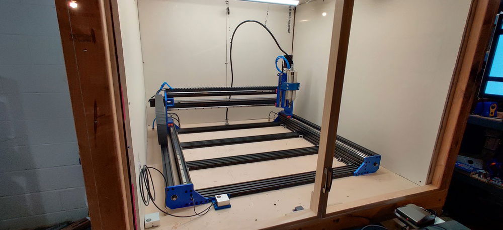 This build started last year when I started designing custom distro plates for a previous case that I had, I ended up building a CNC machine and enclosure in the basement while I waited for Zen 2's release. I started buying parts for it in December of 2018 and finished the build just before Xmas of 2019. It is a 1m x 1m with a 2.2KW watercooled spindle.