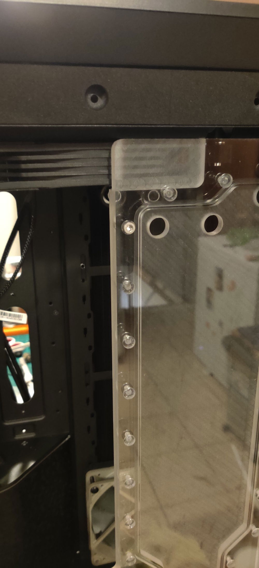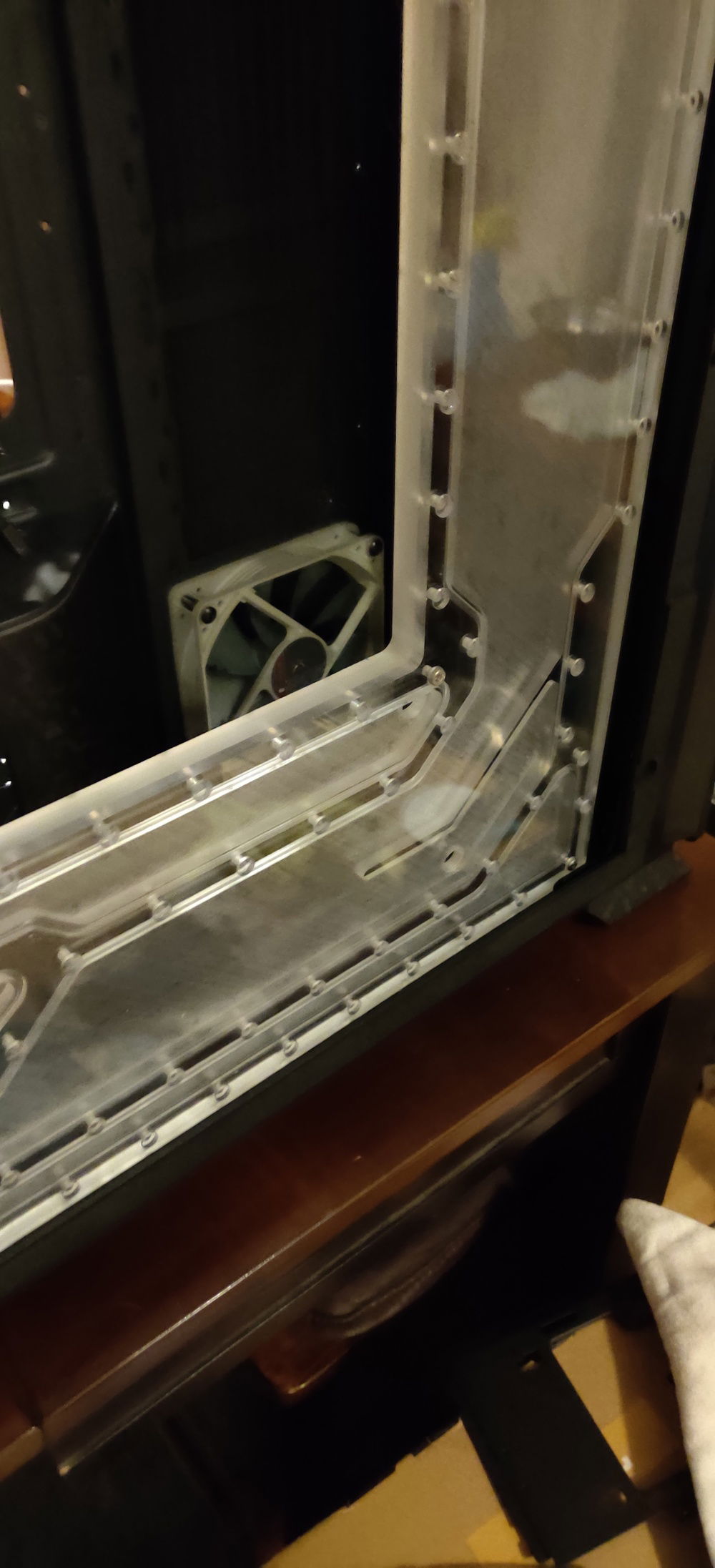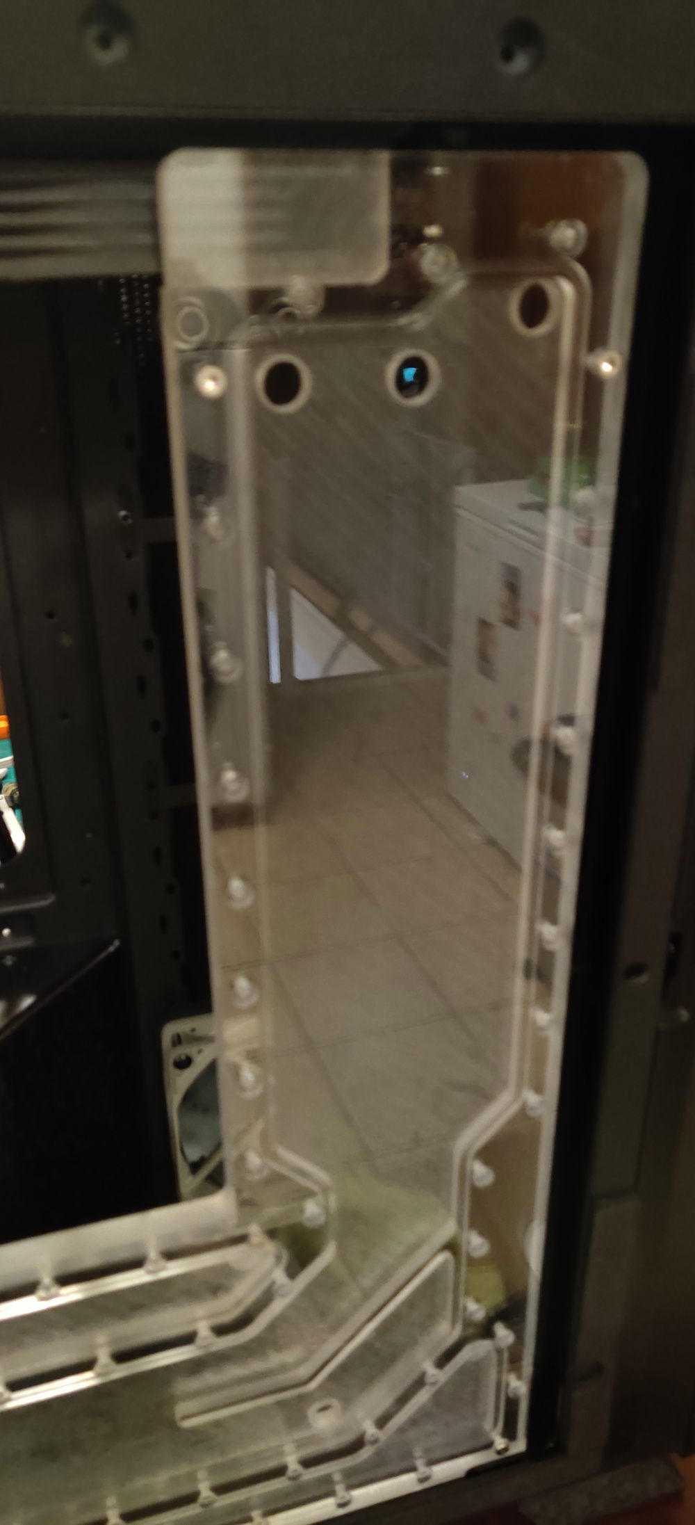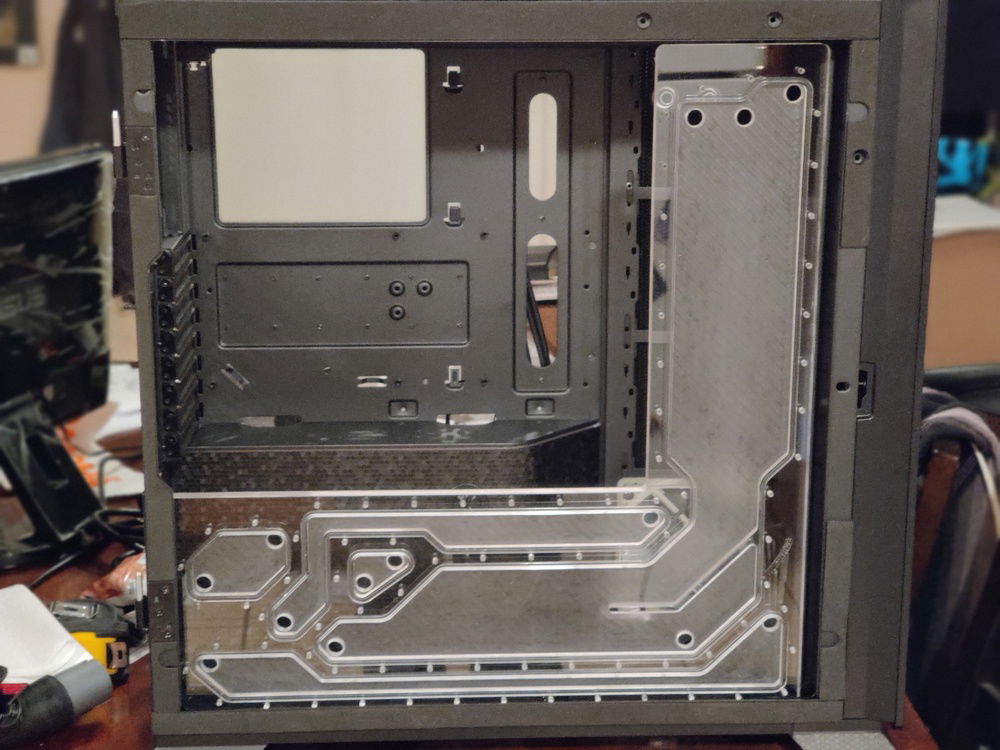 After a lot of double-checking code and rechecking code I put the first bit to acrylic over the weekend. Results came out better than I could ever hope for the first go about! Alot came out right, all the holes are where they should be, screws fit where they should. Realized my threadmill is a 60° taper to it instead of the 55° the G1/4 uses. Fittings still fit but decided to go ahead and purchase the right thread mill for G1/4. Also realized I mistakenly mismeasured the length of it. So will need to extend some portions and re-run the plate again, need to for the fittings anyways. Sorry for the terrible lighting in the case, It is sitting directly under the lights.