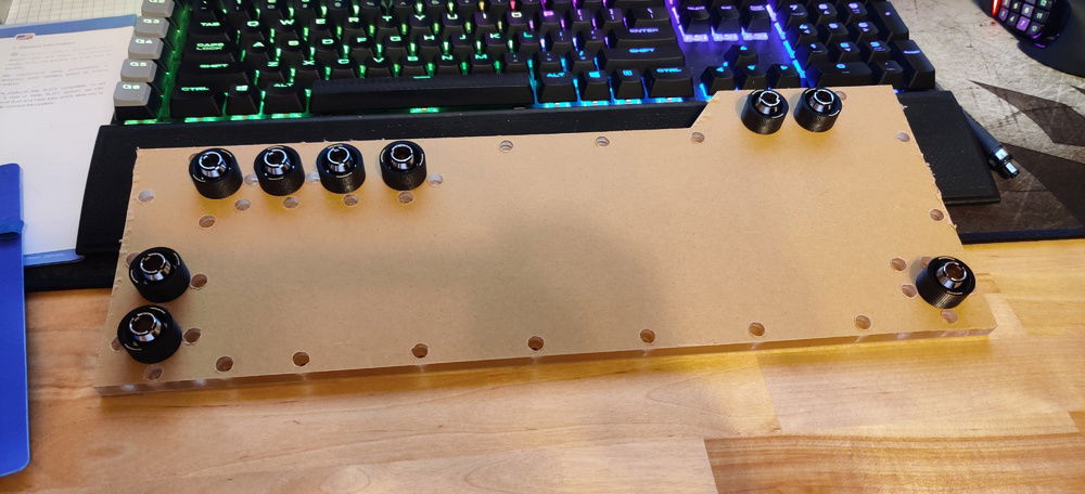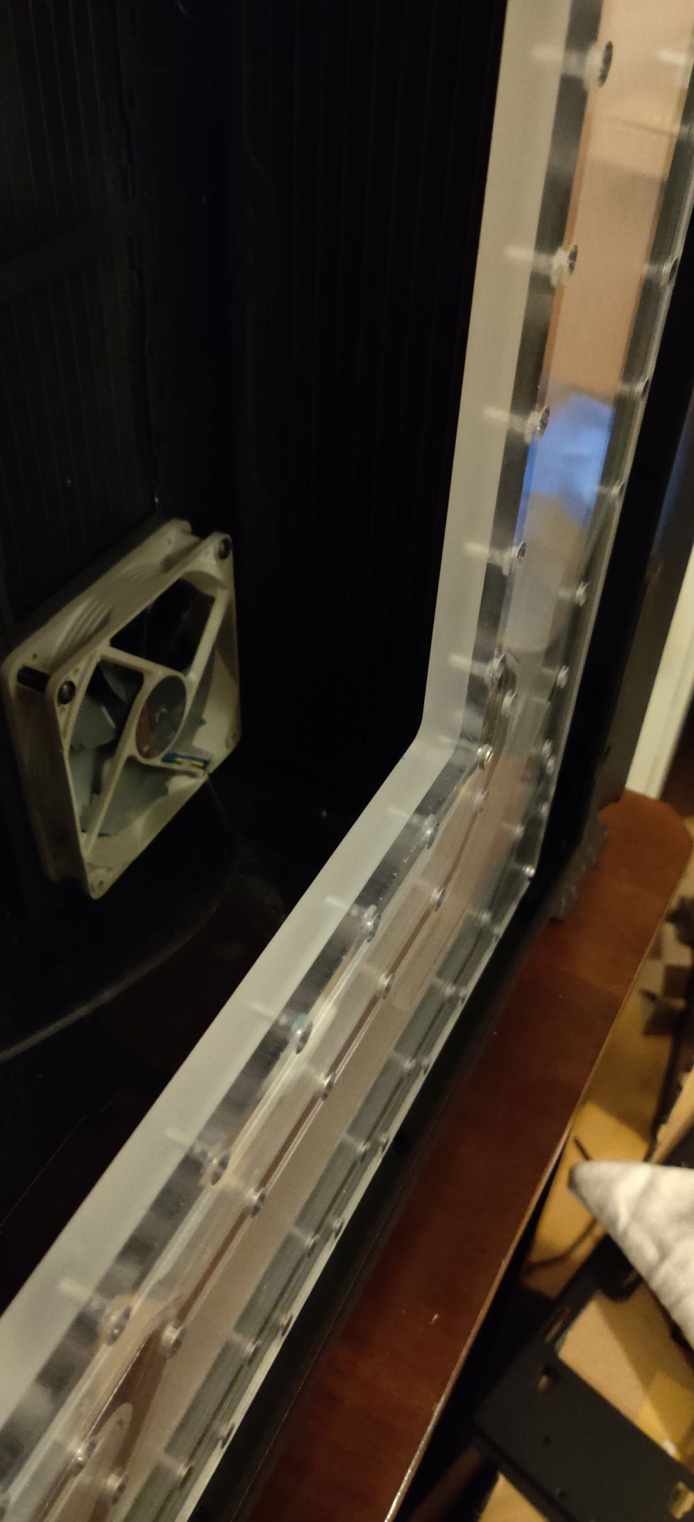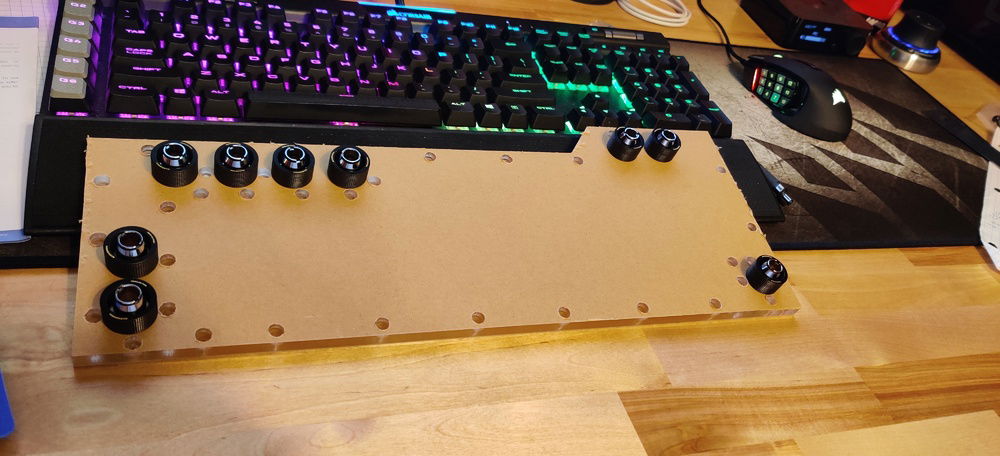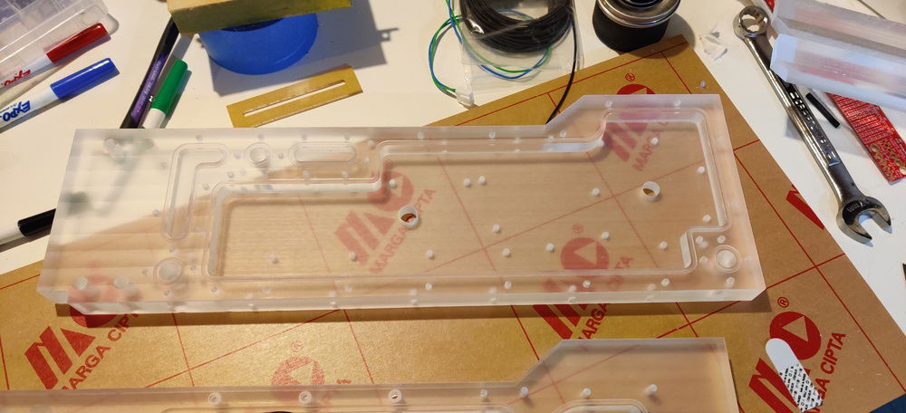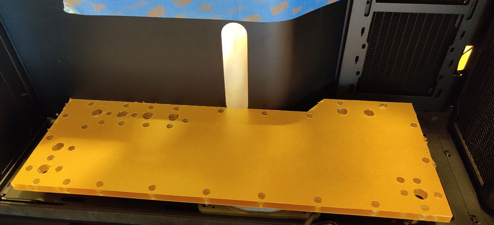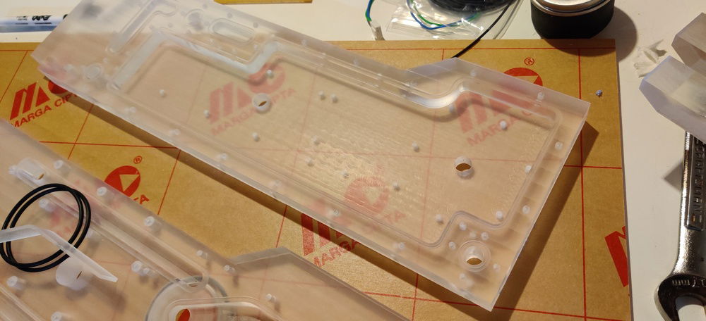 After a lot of double-checking code and rechecking code I put the first bit to acrylic over the weekend. Results came out better than I could ever hope for the first go about! Alot came out right, all the holes are where they should be, screws fit where they should. Realized my threadmill is a 60° taper to it instead of the 55° the G1/4 uses. Fittings still fit but decided to go ahead and purchase the right thread mill for G1/4. Also realized I mistakenly mismeasured the length of it. So will need to extend some portions and re-run the plate again, need to for the fittings anyways. Sorry for the terrible lighting in the case, It is sitting directly under the lights.