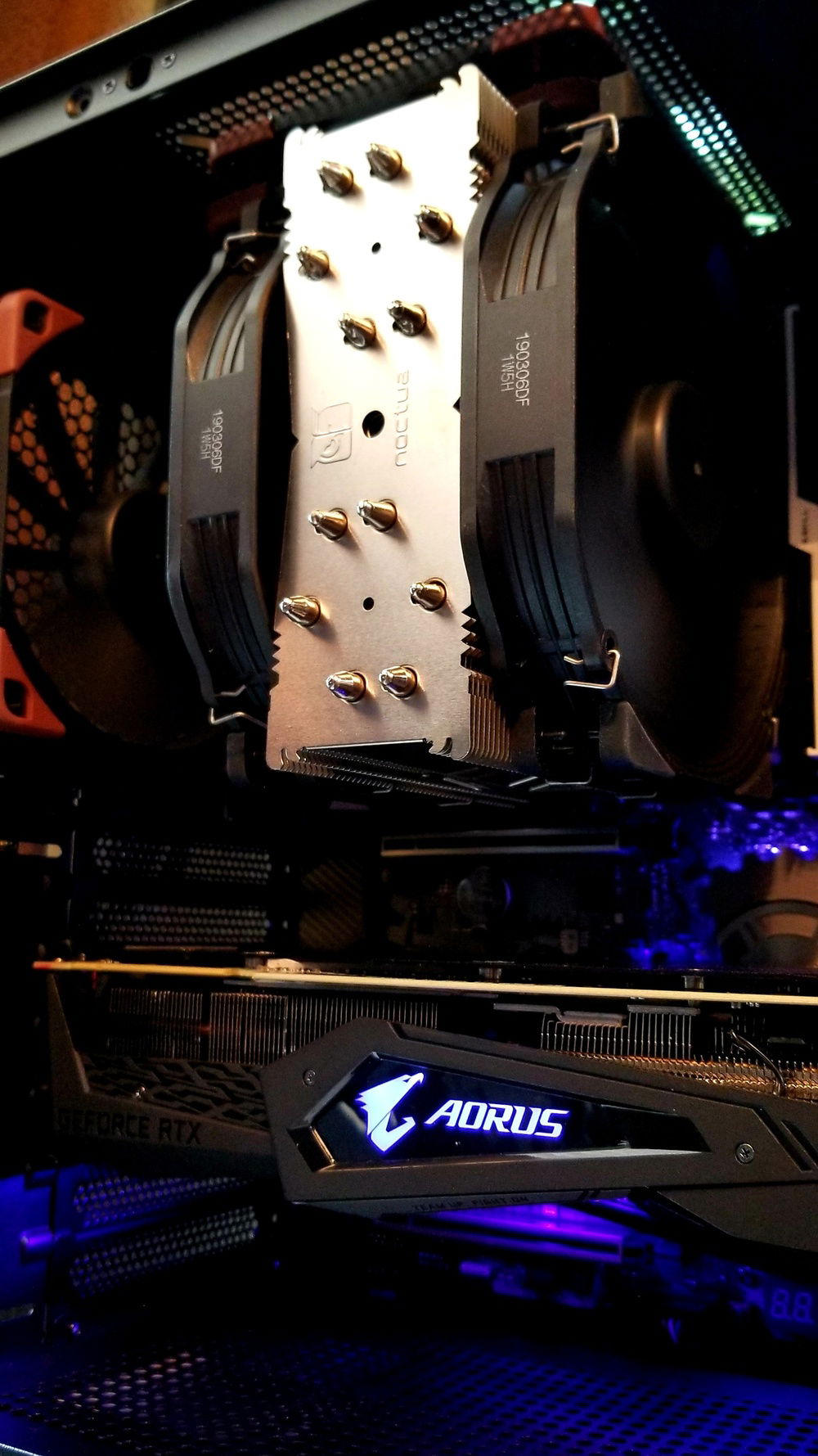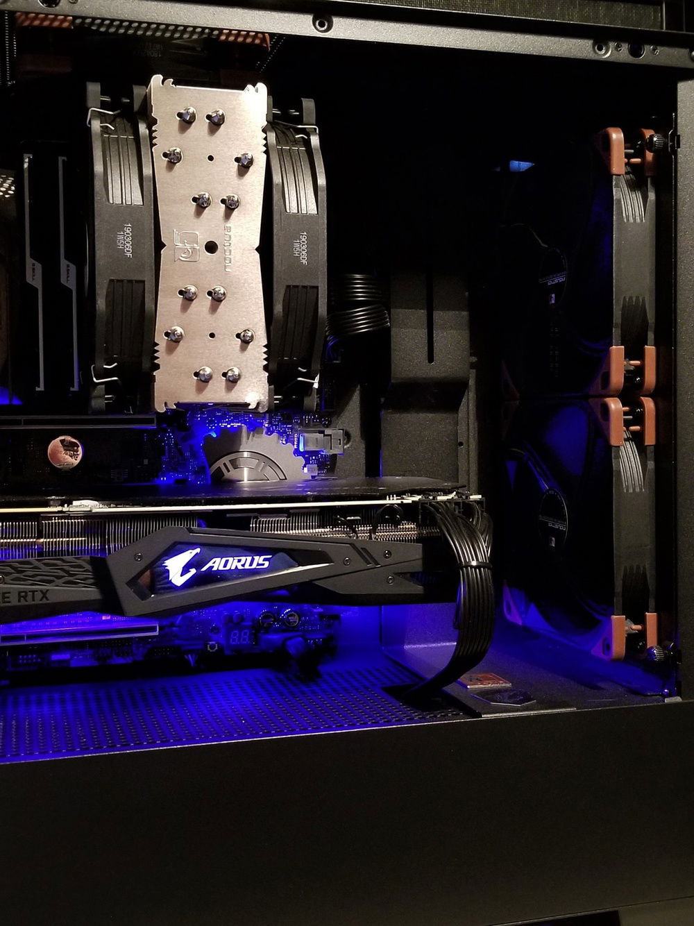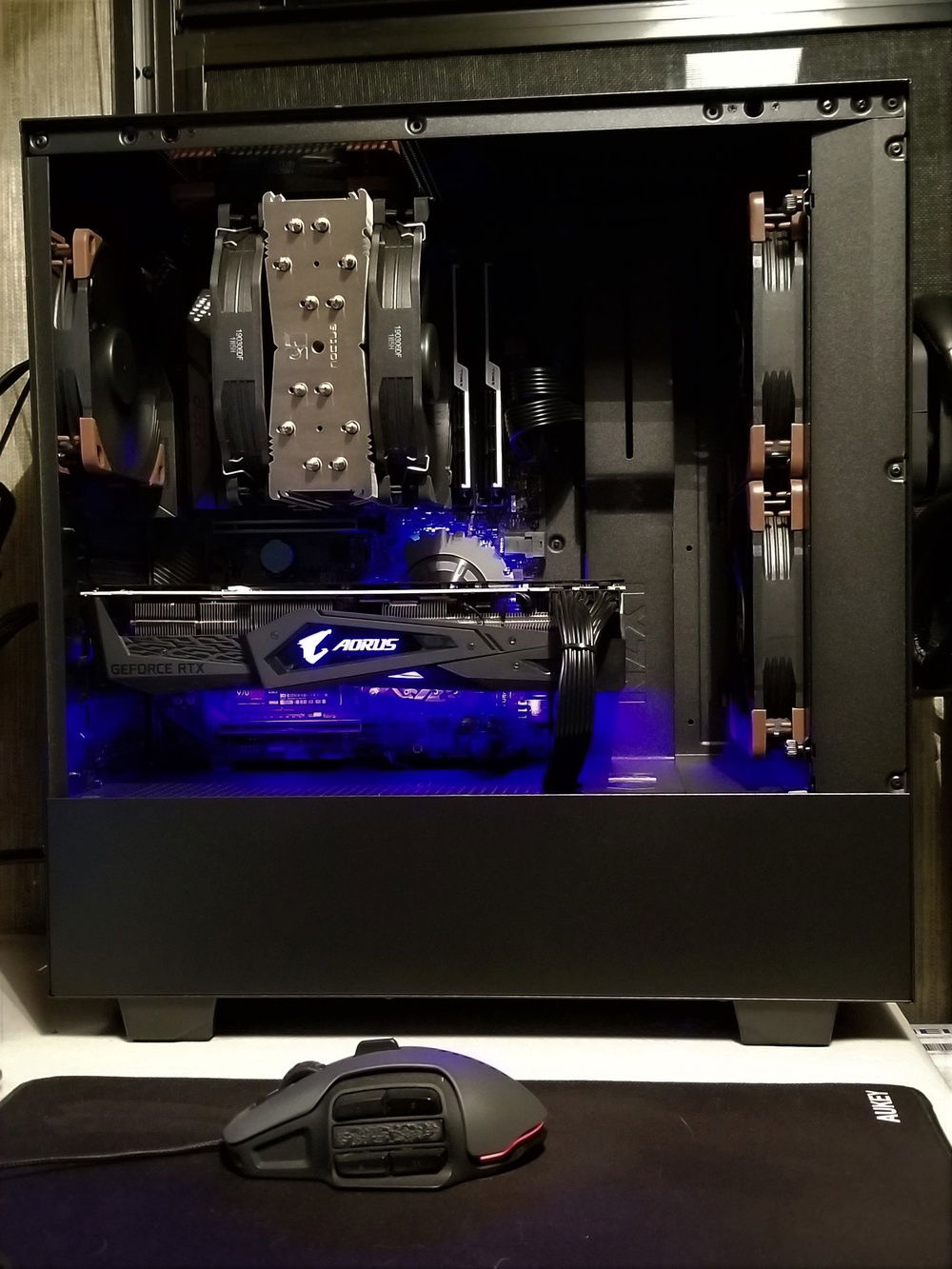 This is my Home Office machine. I use it for working at home as a consultant in healthcare design (AutoCAD, SketchUp, Vray, Bluebeam, etc.) The original configuration included an Enermax cooler and stock NZXT fans. It ran a little warm in the beginning and over time gradually got worse, running at 68c at idle. Also, the Enermax pump and fans were noisy and also gradually worsened. So I switched to an all Noctua setup and wow! I was pleasantly surprised by how extremely quiet and cool the new system ran!