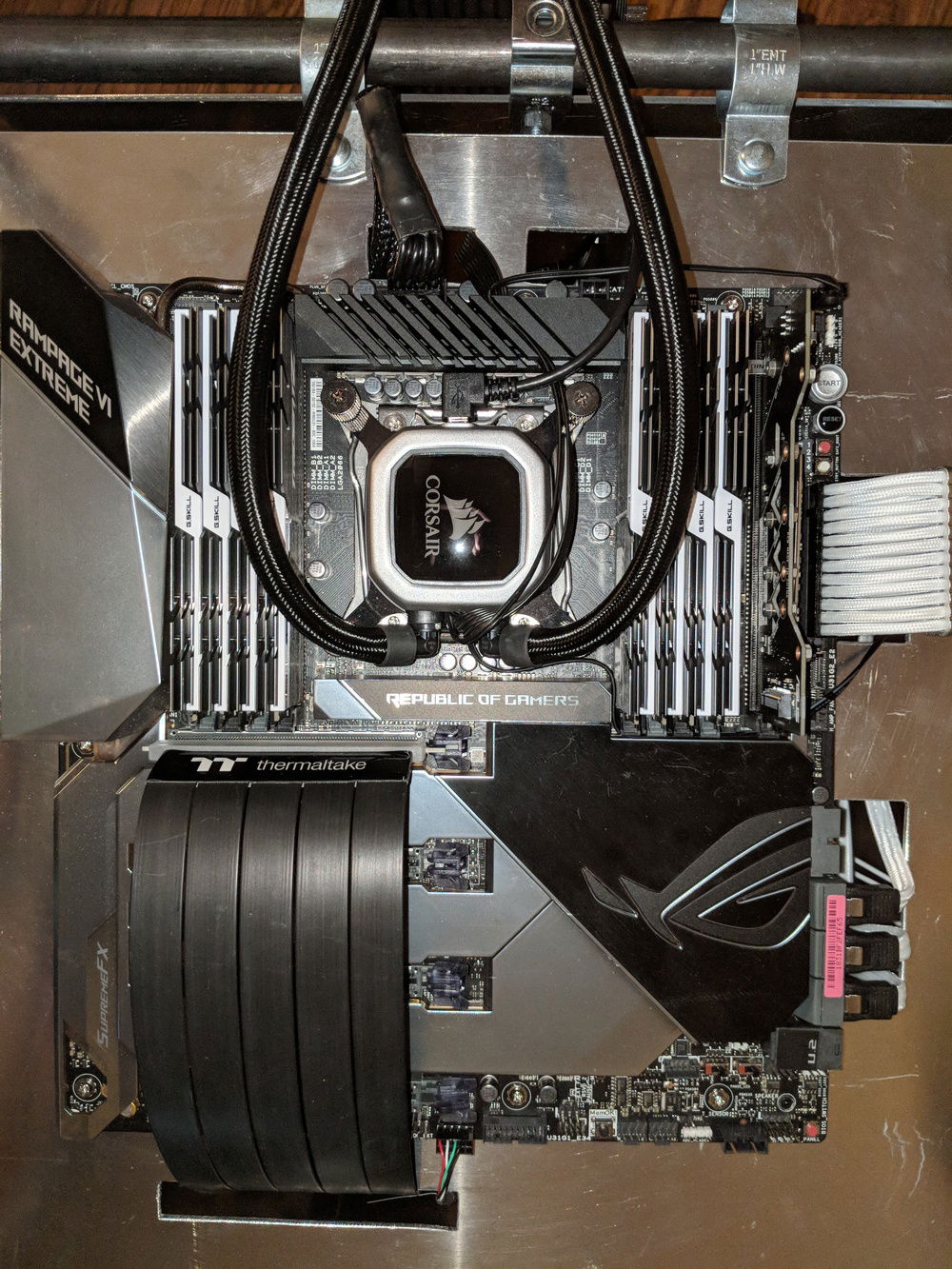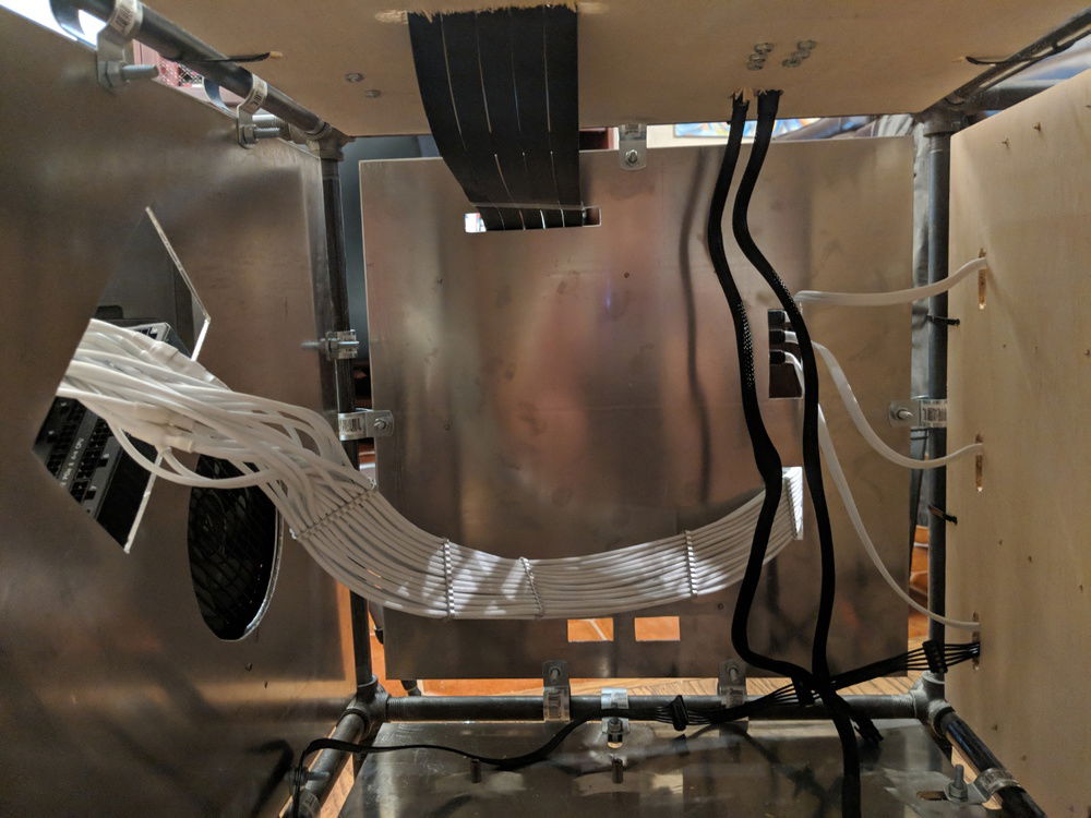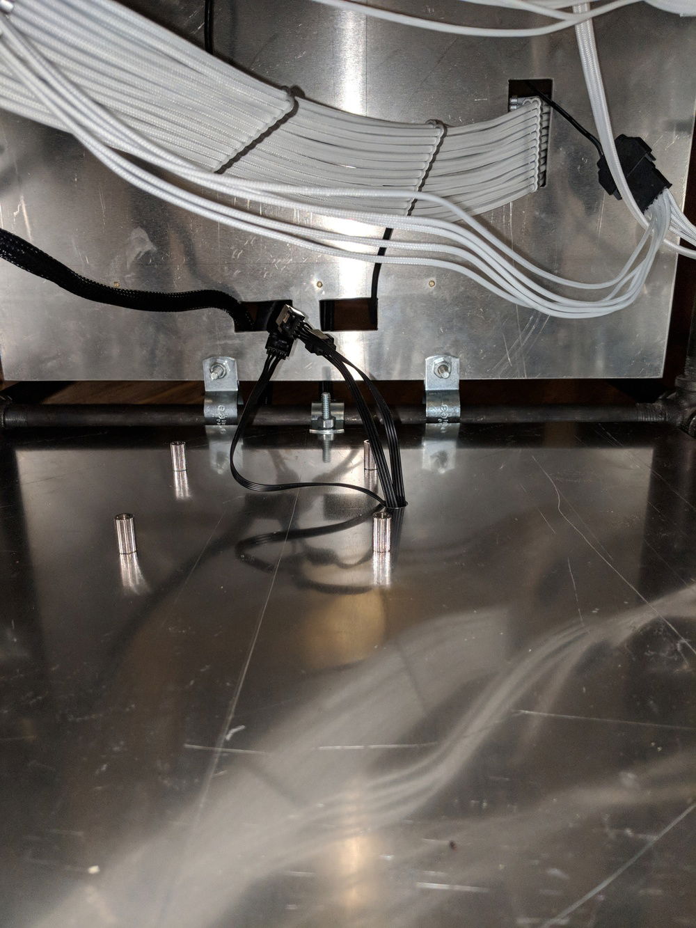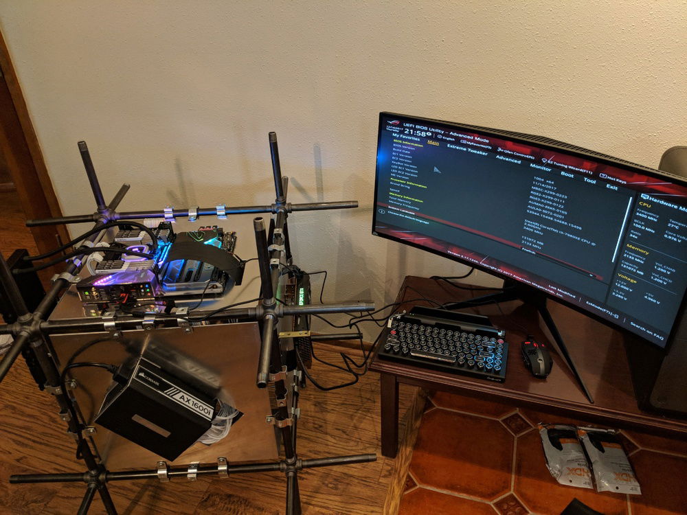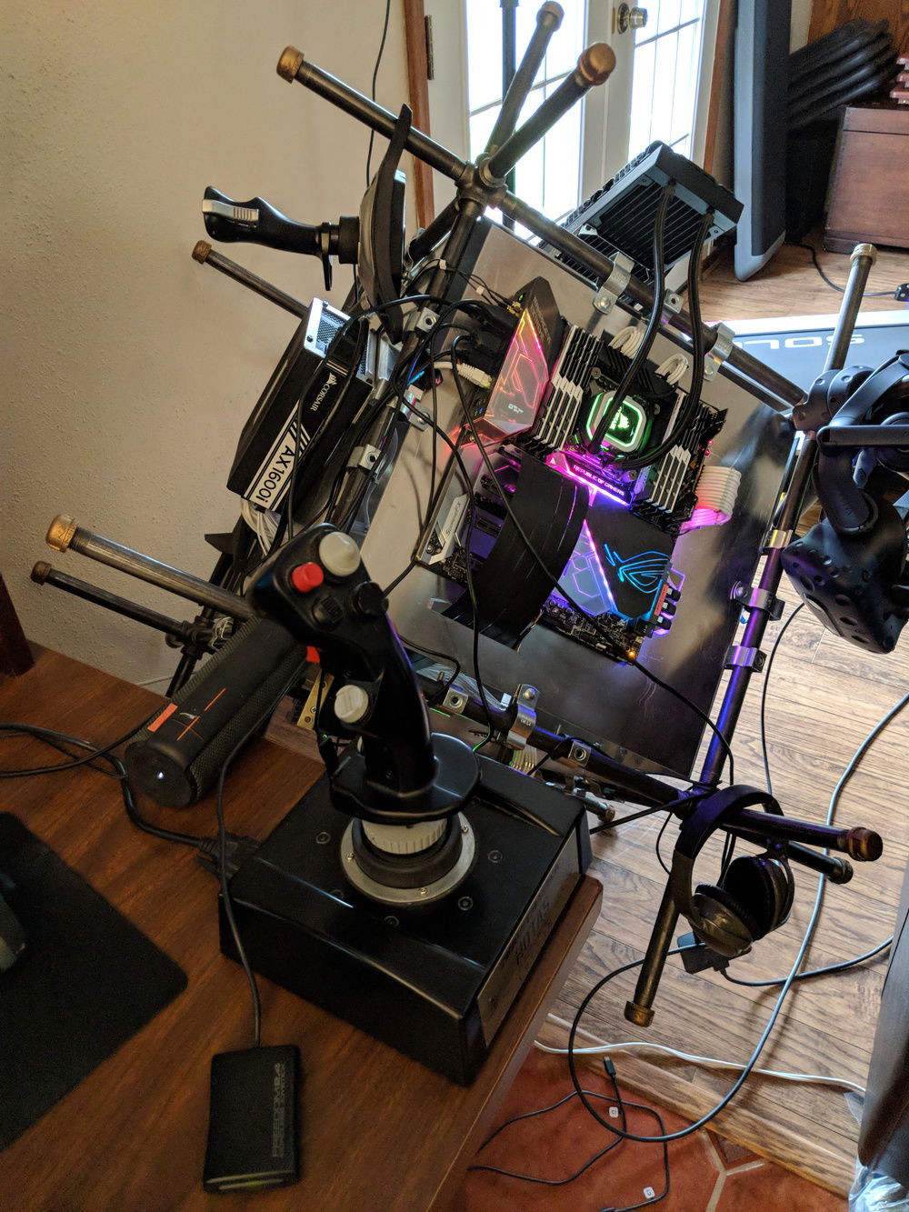 Built a computer for editing and rendering 360 5K video. First time computer builder. Decided to design my own case. Theme was around a cube with a different component on each face of the cube. I used steel pipe and aluminium plates connected with brackets used in the electrical industry.