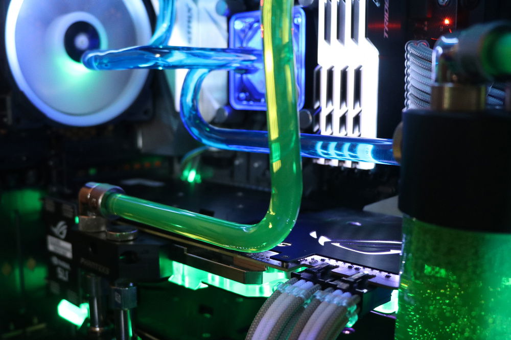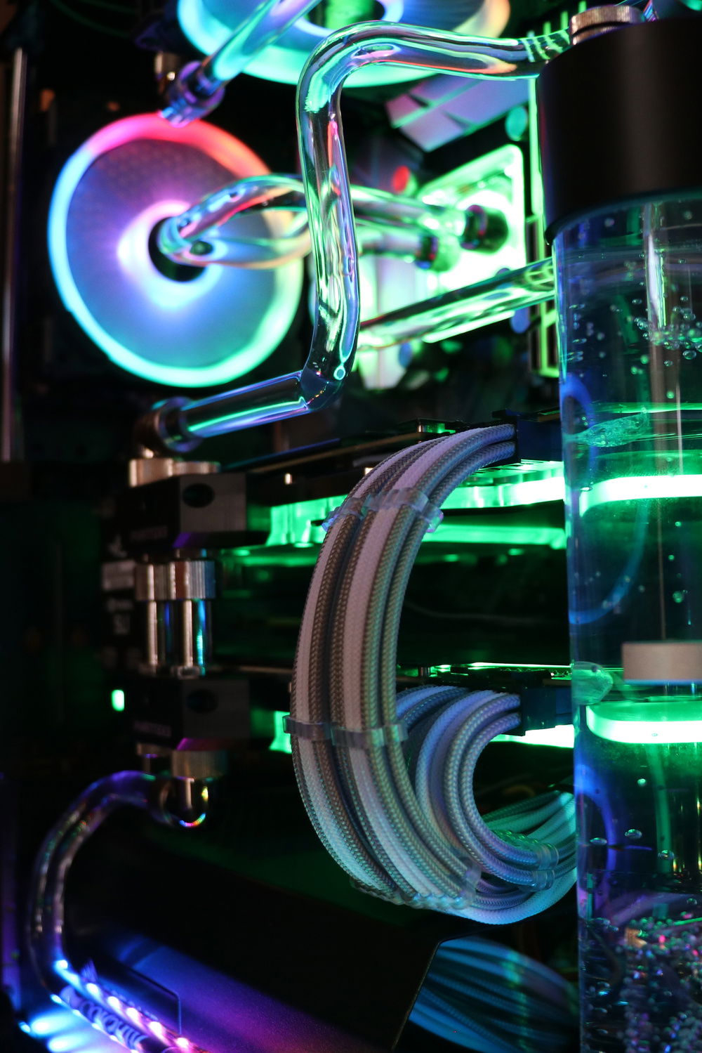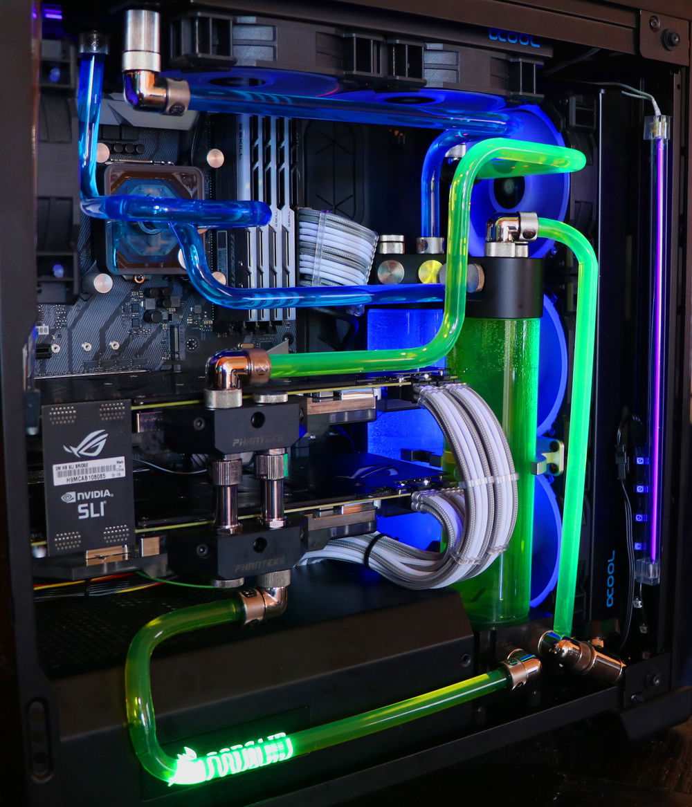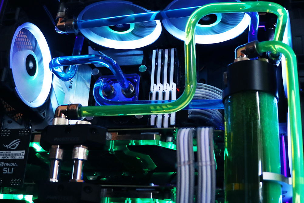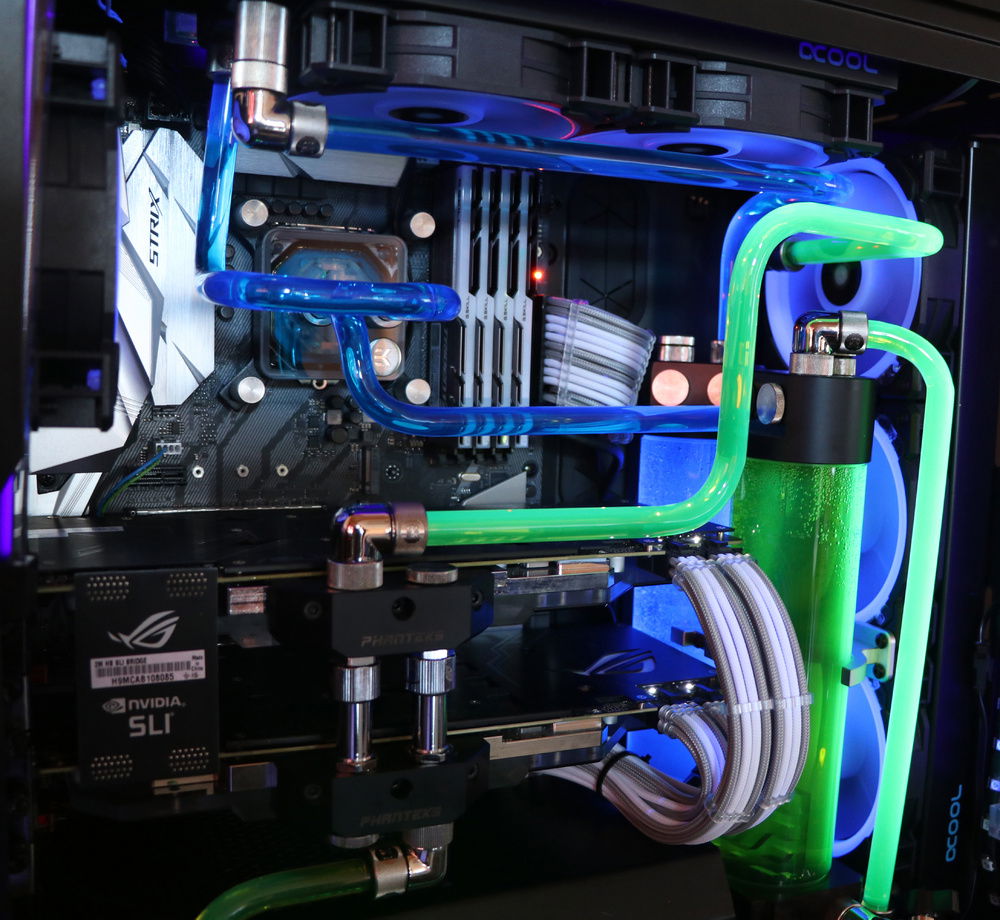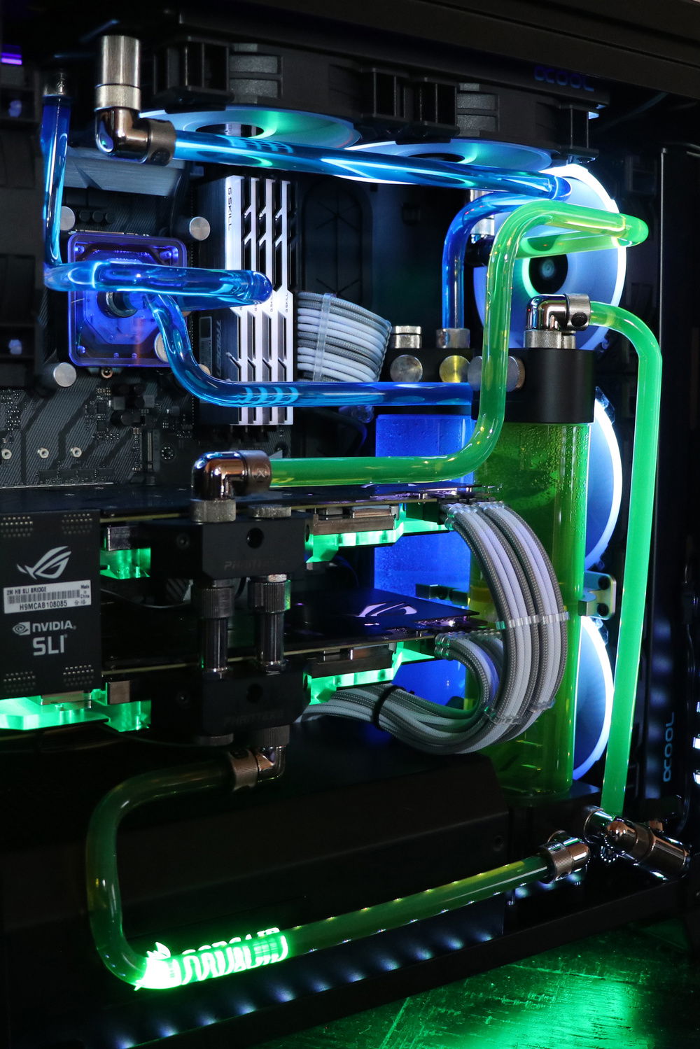 This build started simple enough and then morphed into what it is today. Cooling the dual 1080ti's offered a bit of a challenge until I put together the dual loop, separating the cpu and gpu custom loops. I also encountered plenty of opportunity with the Corsair 570x case and adequate airflow. The original layout, even with the two separate cooling loops, still resulted in some serious heat issues. I ended up setting all fans to exhaust and created a completely negative airflow design. I have researched positive versus negative airflow, and have plenty of experience with this setup, there is no need to comment on the fact my front fans are backwards. I understand, but sometimes you simply have to do what it takes to keep your rig temps at bay. I am happy to say the system runs cool, quiet, and is a pretty nice over-clocker.