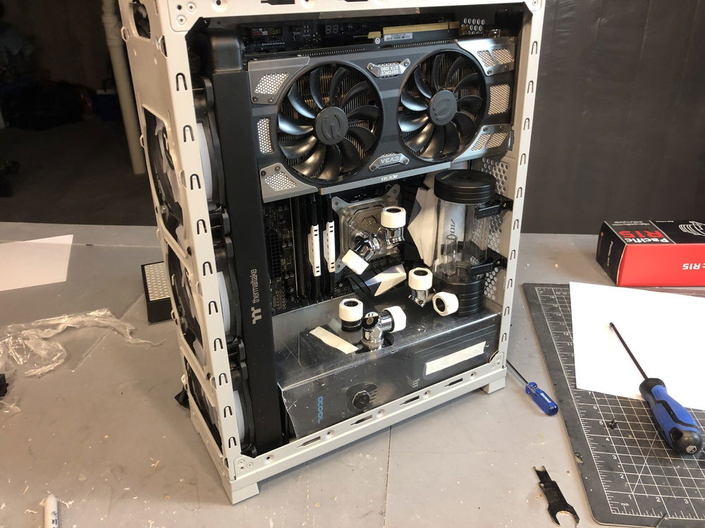 The build is now complete! Its hard to explain the challenges of the build since most of it gets covered by other components. For most of this build process I was working with mere millimeters to get parts like the reservoir to fit under the gpu.