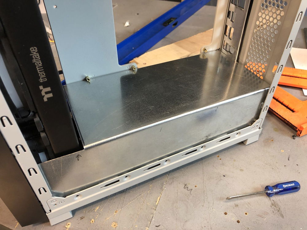 In order to hide the components in the bottom I had to make a shroud. This took a couple versions with the first prototype being made from acrylic so that I can see if something like this is even possible. Once that was made I went on to make the final version out of a sheet of Aluminum.