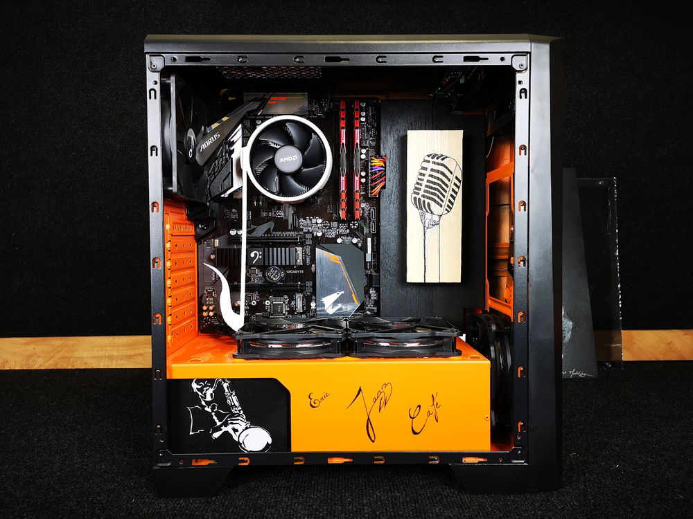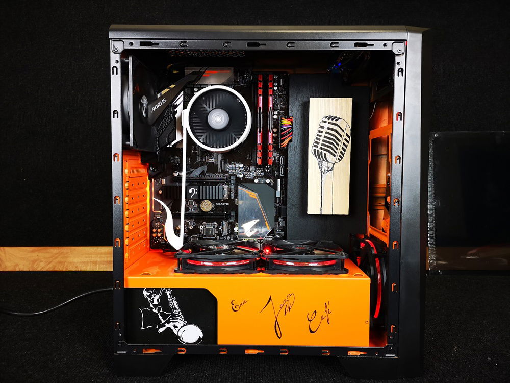 This build has been done for a friend who needed something to do some virtualization for his upcoming work. So there is no need of a big GPU, an APU was better. He loves music et specially Jazz music so i did for him something that was close to a Jazz Café during the 60's. All has been done by hand, no 3d printing or laser cut. The build have to be around 600 euros. Hope you'll like it.