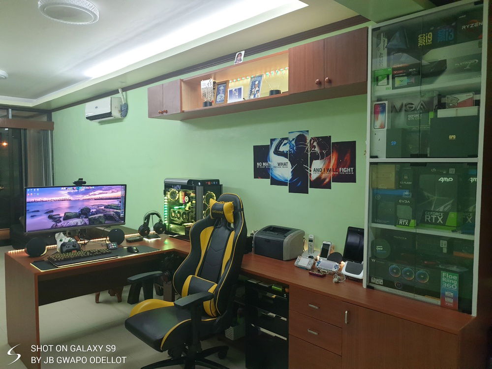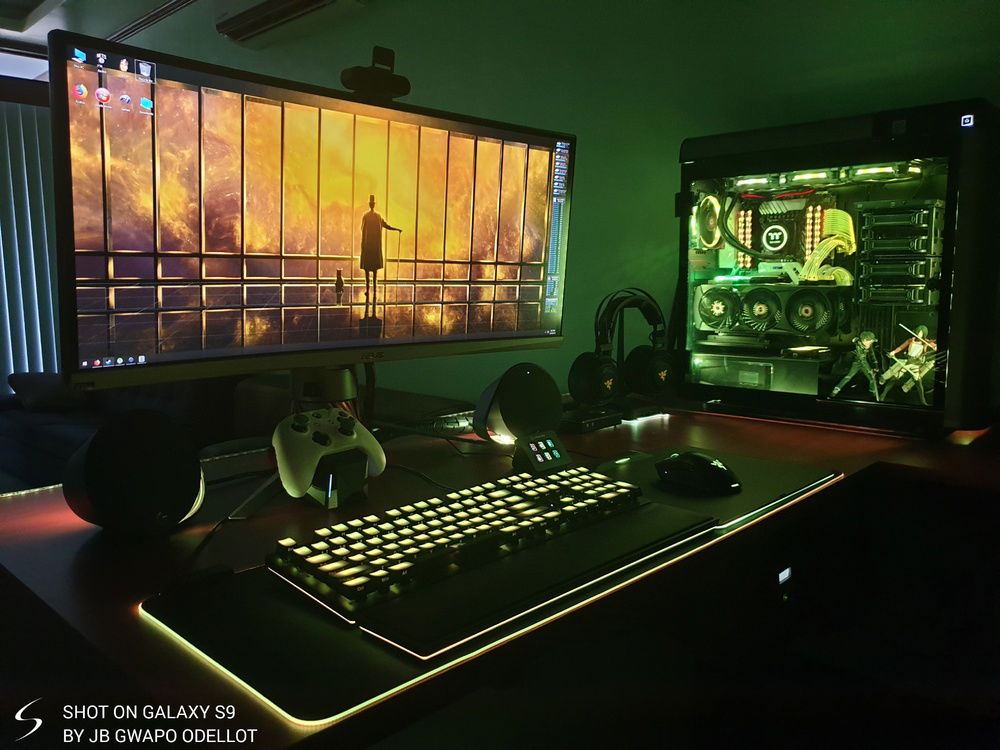 Asus ROG PG348Q Monitor Razer Huntsman Elite Keyboard Razer Firefly - Mamba Hyperflux Mouse and Mat Razer Goliathus Extended Chroma Mousepad Razer Base Station Chroma Headphone Stand Razer Nari Wireless Headset Audio Technica ATH-A900X Headphone with Mod Mic 4 Elgato Stream Deck Mini Asus Xonar U7 USB Sound Card Logitech G560 Speaker Logitech Brio Webcam Xbox One S Controller Razer Raiju Tournament Edition Controller