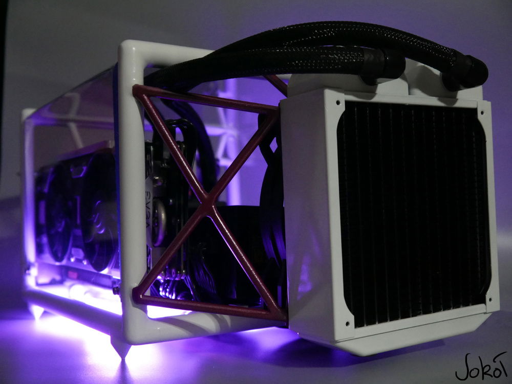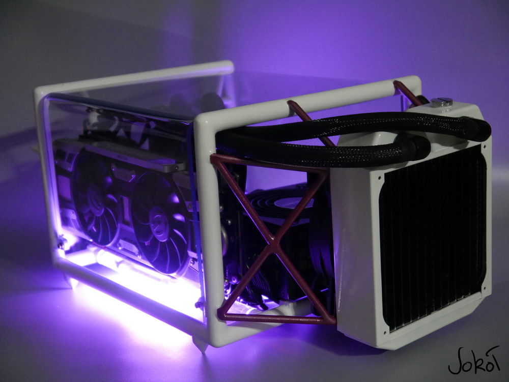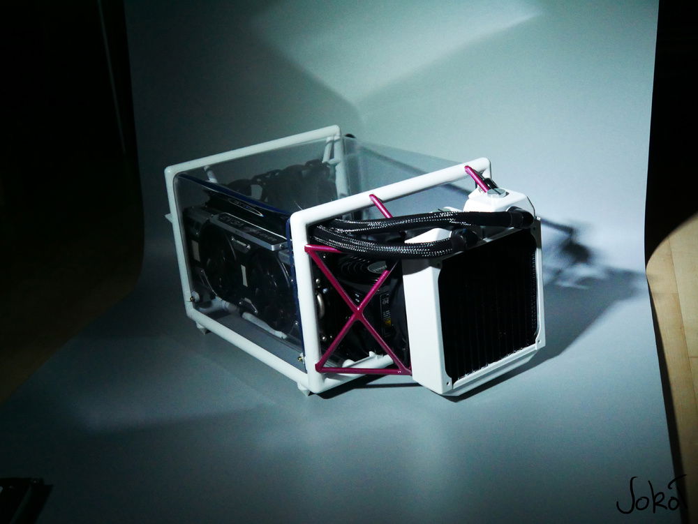 ITX scratch build inspirerad by drift cars and JDM style hence the front mount "oil" cooler and the metal brazing and tube frame.