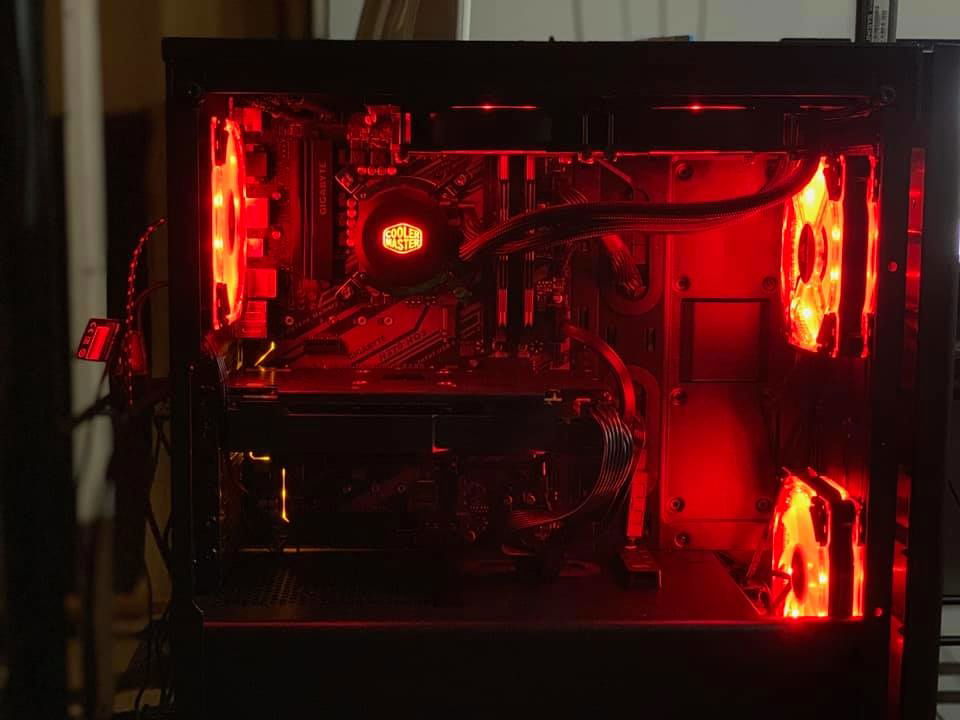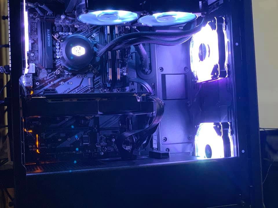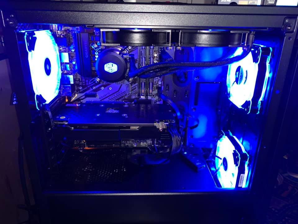 Windows 10 64 bit operating system intel i5-9400f processor gigabyte h370-hd3 motherboard cooler master ml240l cpu cooler Radeon RX570 graphics card 16g dual channel ram corsair hd120 cooling fans corsair 275r case corsair cx650 power supply wd Blue 1 terabyte hard drive samsung v-nand 500gb ssd