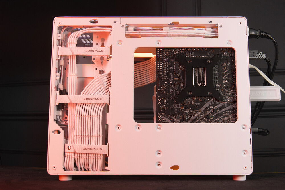 The Jonsplus Z20 case is already compact enough not to dominate the room, but it’s not quite SFF, where everything is crammed in and you have to carefully select each component. Here, you can fit a standard (but short) ATX power supply, affordable mATX motherboards, relatively long graphics cards, and a normal dual-radiator liquid cooler (as long as it isn’t too thick).