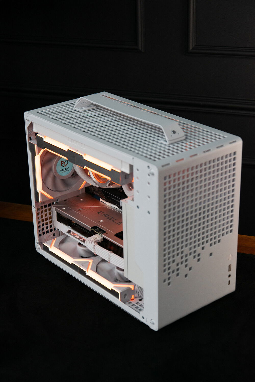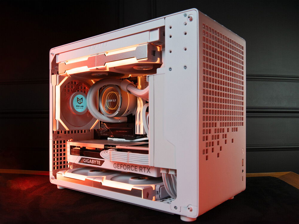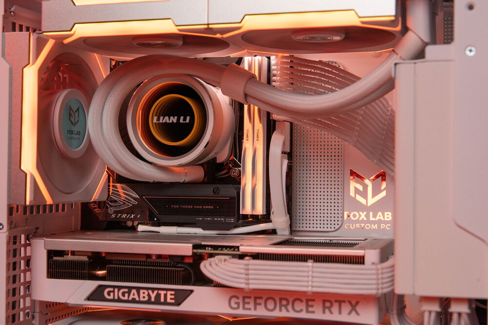 This build is relatively simple yet very nice and pleasant, though it called for extra precision in cable work. We made a custom cable set for this build and used the "wireless" (not so wireless, of course) Lian Li fan set. It would have been better with a white motherboard, of course, but this one was sort of predetermined.