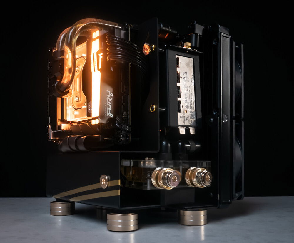 She’s been interested in custom water cooling, seeing a few of my builds over the years. She’s a bit of a tinkerer and wanted to learn to perform her own maintenance and one day, build her dream loop. After a bit of discussion and debate, she talked me into building a SFF custom loop to reduce PC footprint and have a baller machine. Although I enjoy building SFF loops, I explained to her the complexities involved when performing maintenance in SFF loops (i.e., access to fittings), higher temps due to less radiator and increase cost. We came up with an interesting solution to build a mini-ITX, open air SFF loop, where everything is accessible to her. To maximise cooling I planned to fit two radiators (somehow???) on to this lil serpent.