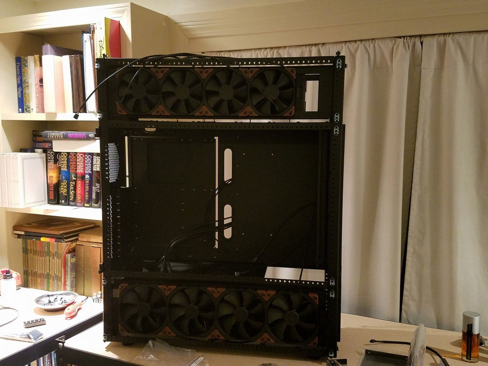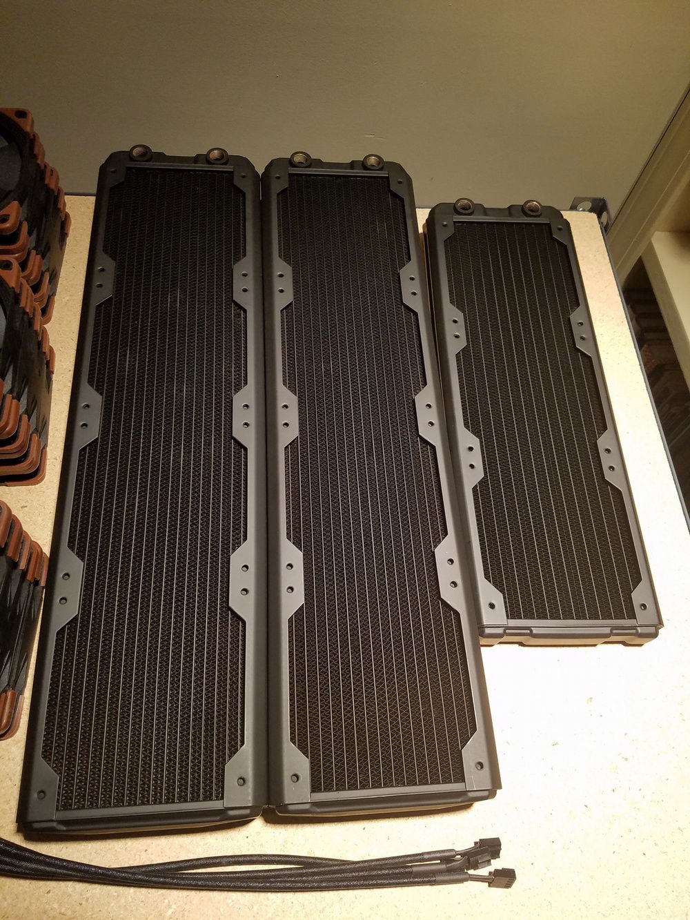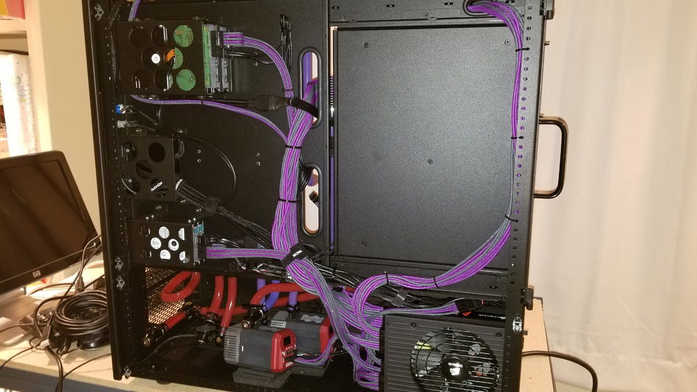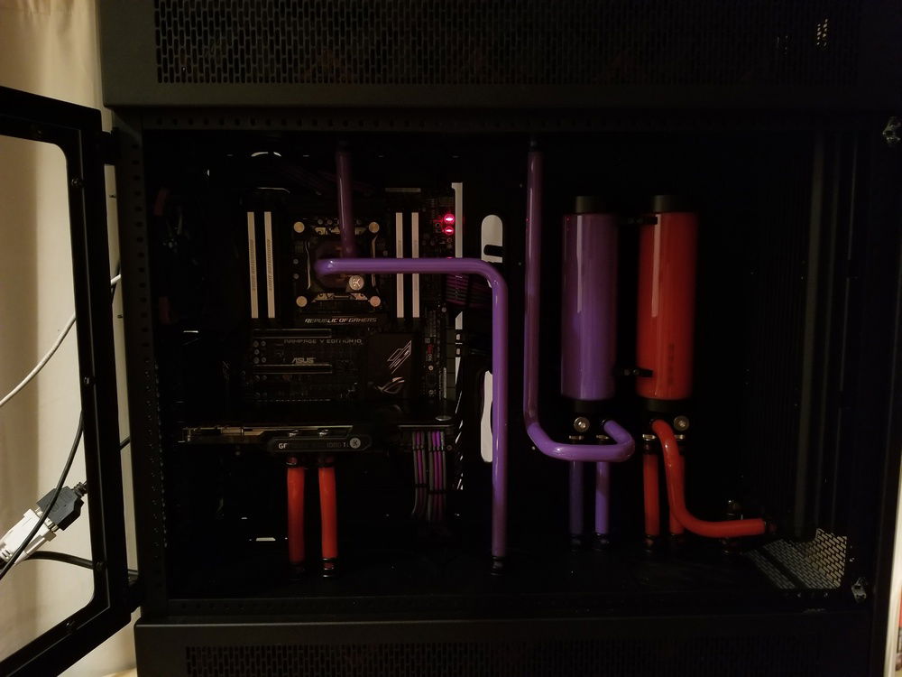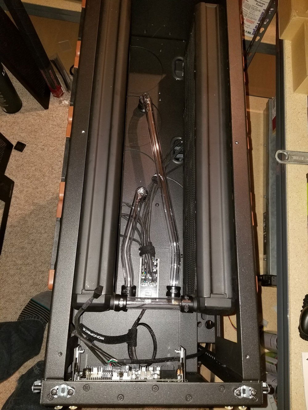 First attempt at a watercooled pc, little over 12 months of building and still not done. When my previous computer started to show it's age I decided it was time to dip my feet into some water cooling and go all out a Caselabs case and custom water cooling. Some things never got finished for various reasons (sli 1080ti's) and others have been put off until I clean out the loop (finish the led strip mounting) and place her on my custom desk.