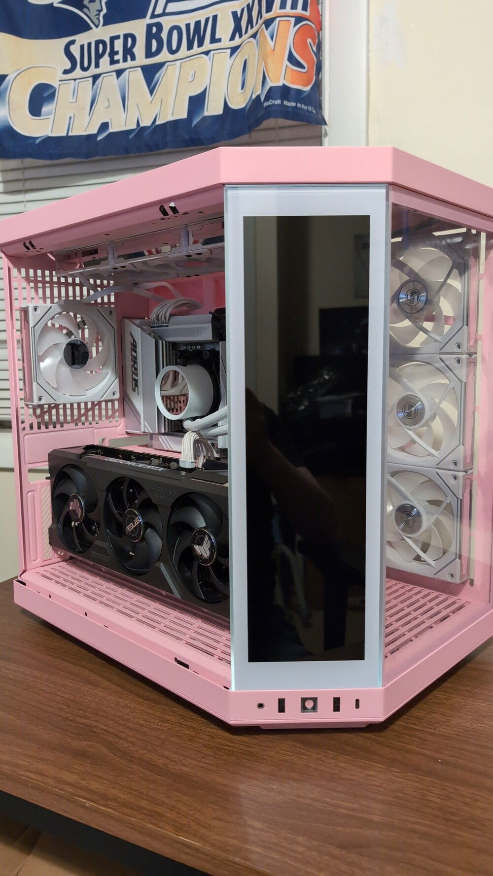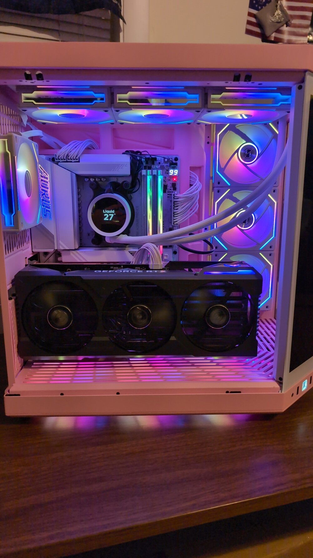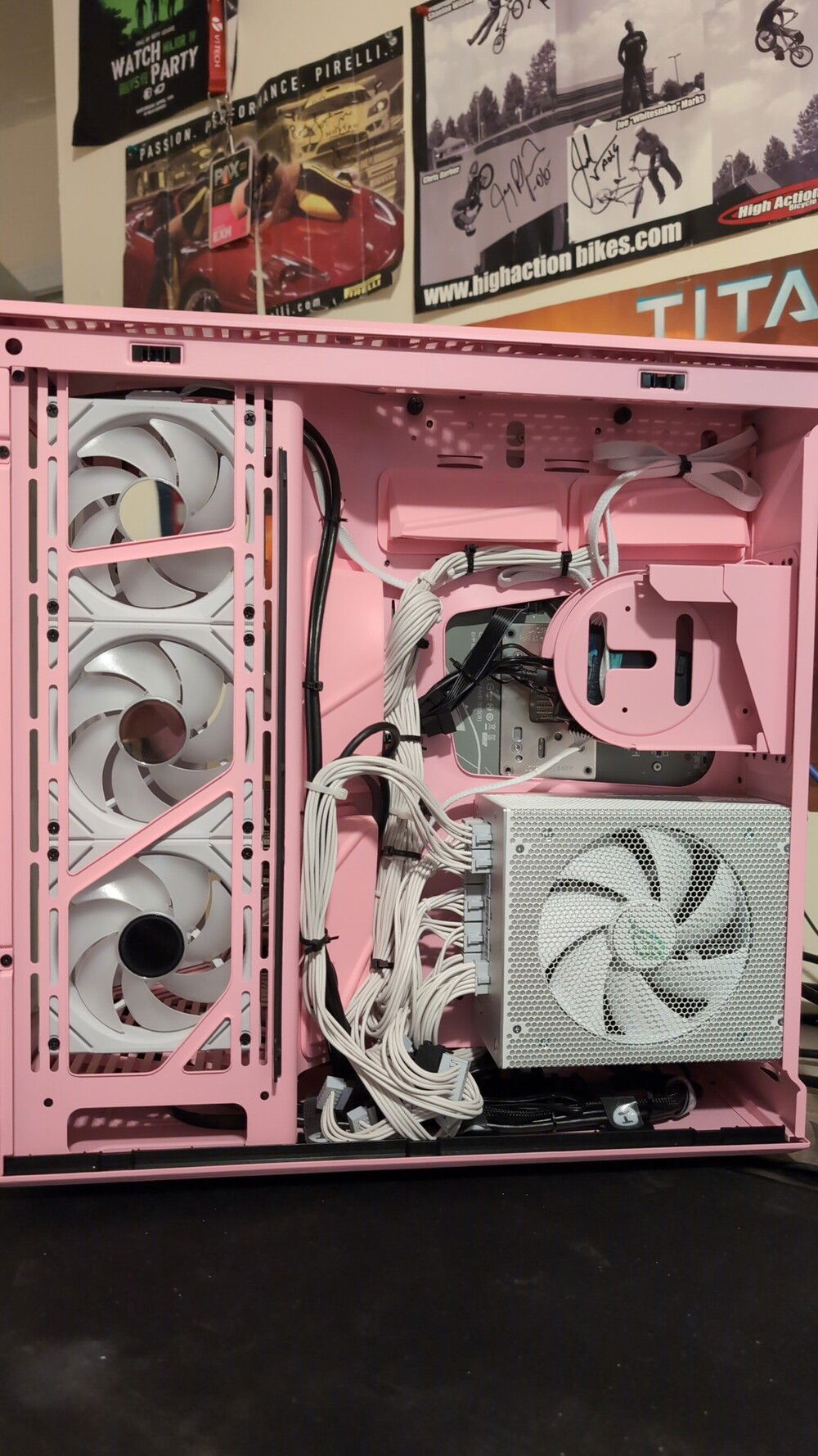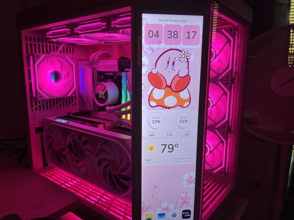Pc is done in the new hyte y70 in pink with the white touchscreen panel. Also with the new x870e aorus motherboard featuring 7200mhz ram