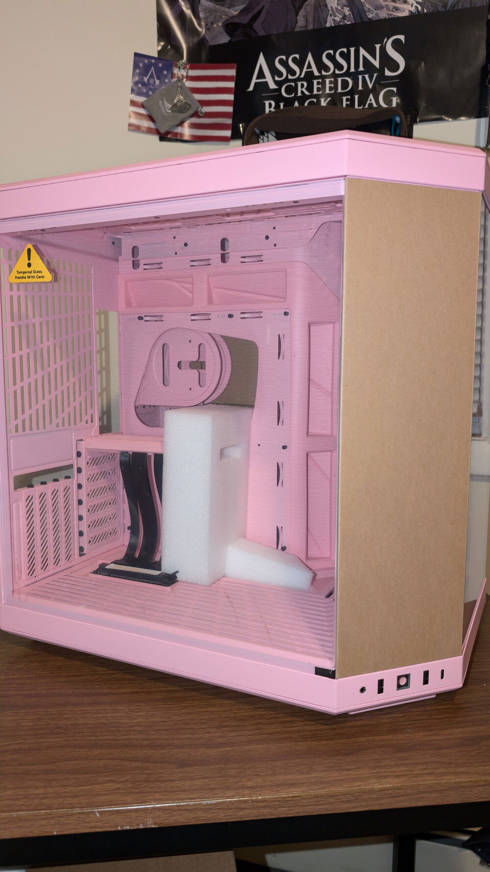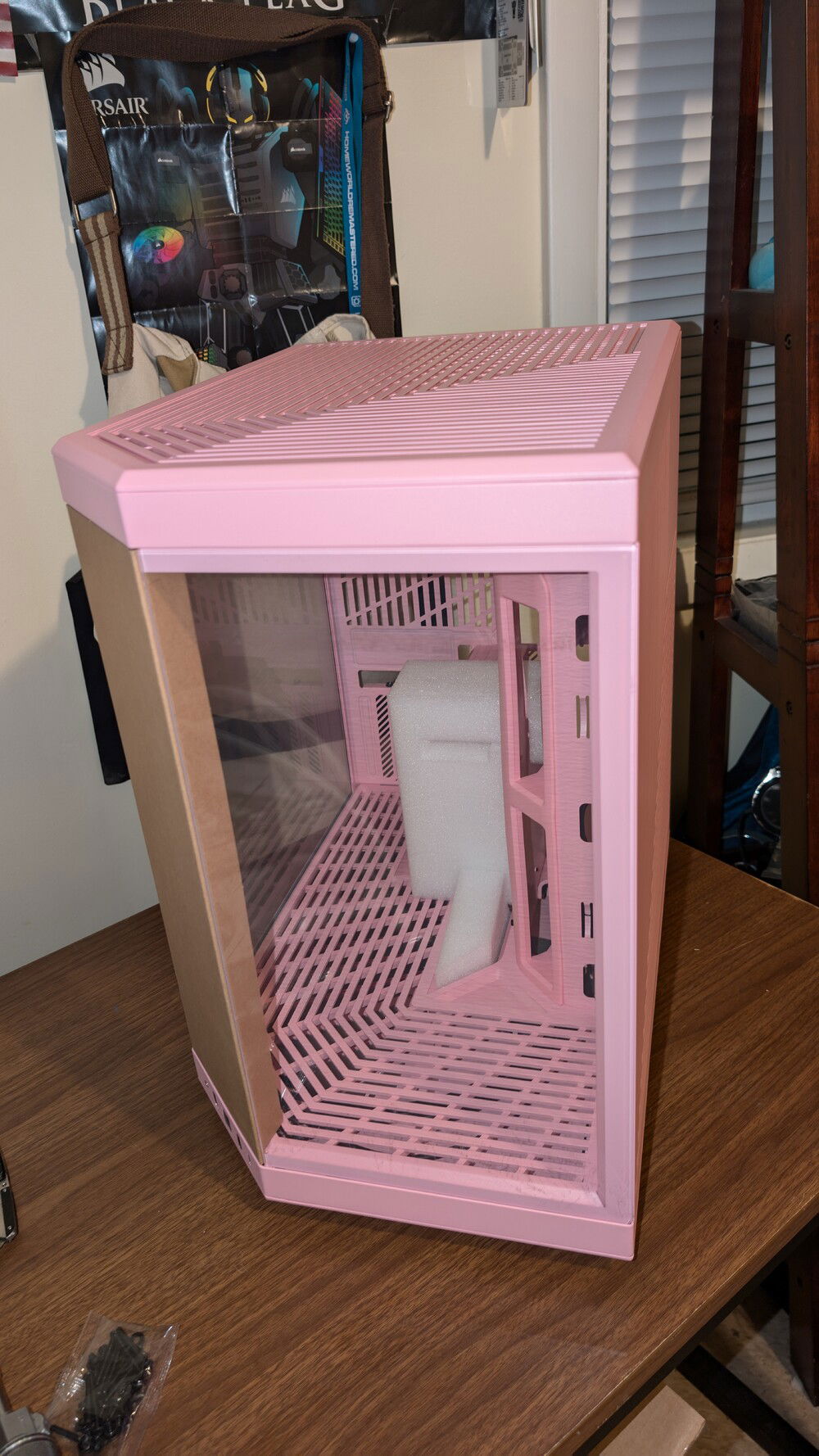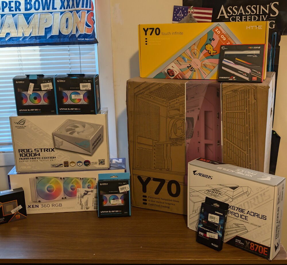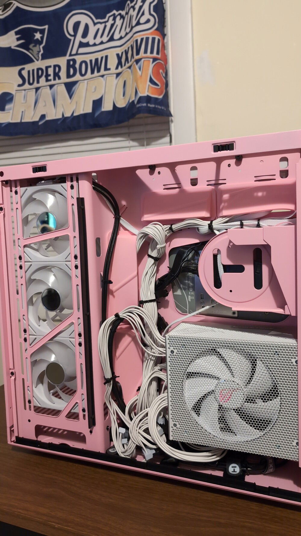 Pc is done in the new hyte y70 in pink with the white touchscreen panel. Also with the new x870e aorus motherboard featuring 7200mhz ram
