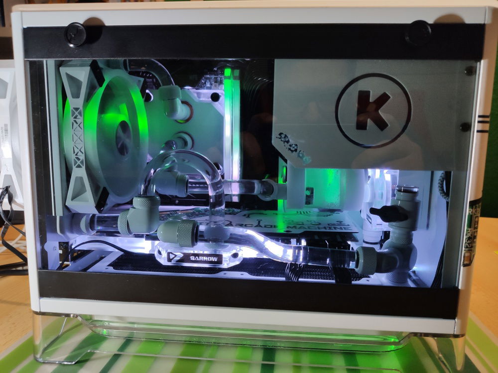 After a year I decided to do a custom loop of my Mini PC. The challange is to put a lot of components in a very small ITX case. [In Win A1] 5 fans, pump, reservoir, 2x120 + 1x120 radiators, Some Corsair RGB and Fan control, like Commander Pro, ecc ....