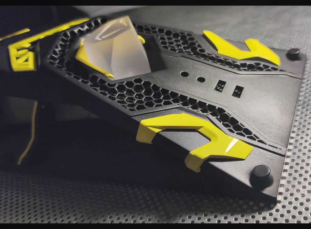 Design created using sheet metal and 3D printing. The type of 3D printing is SLA technology in which a use of sanding and surface finishes has been made to the smallest detail. This design was previously designed using 3D engineering software. The reservoirs and liquid communication pathways have been exclusively designed for this model.