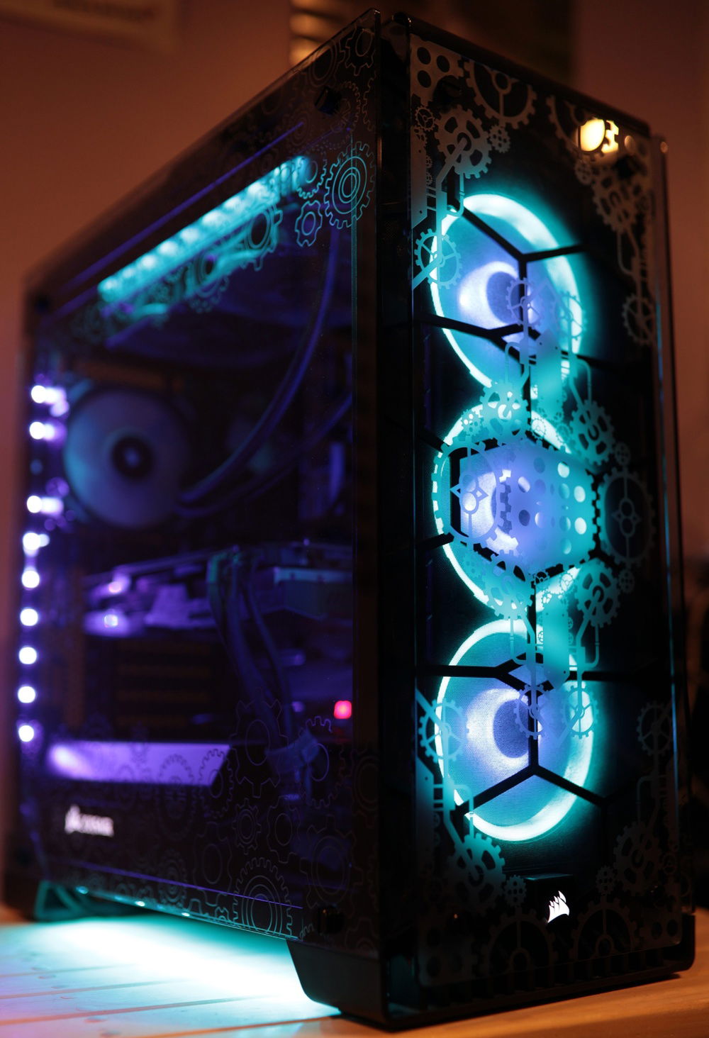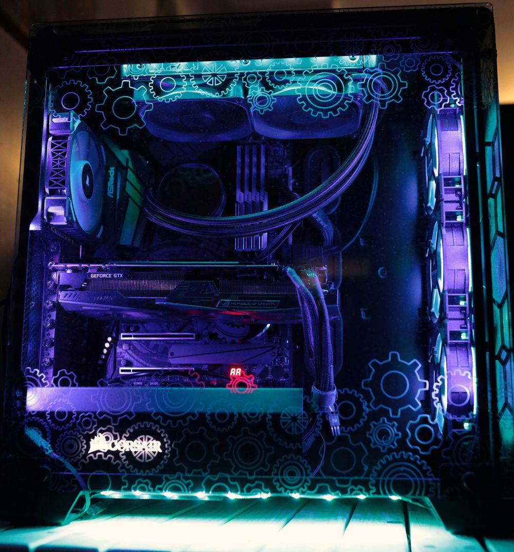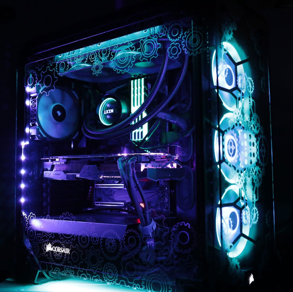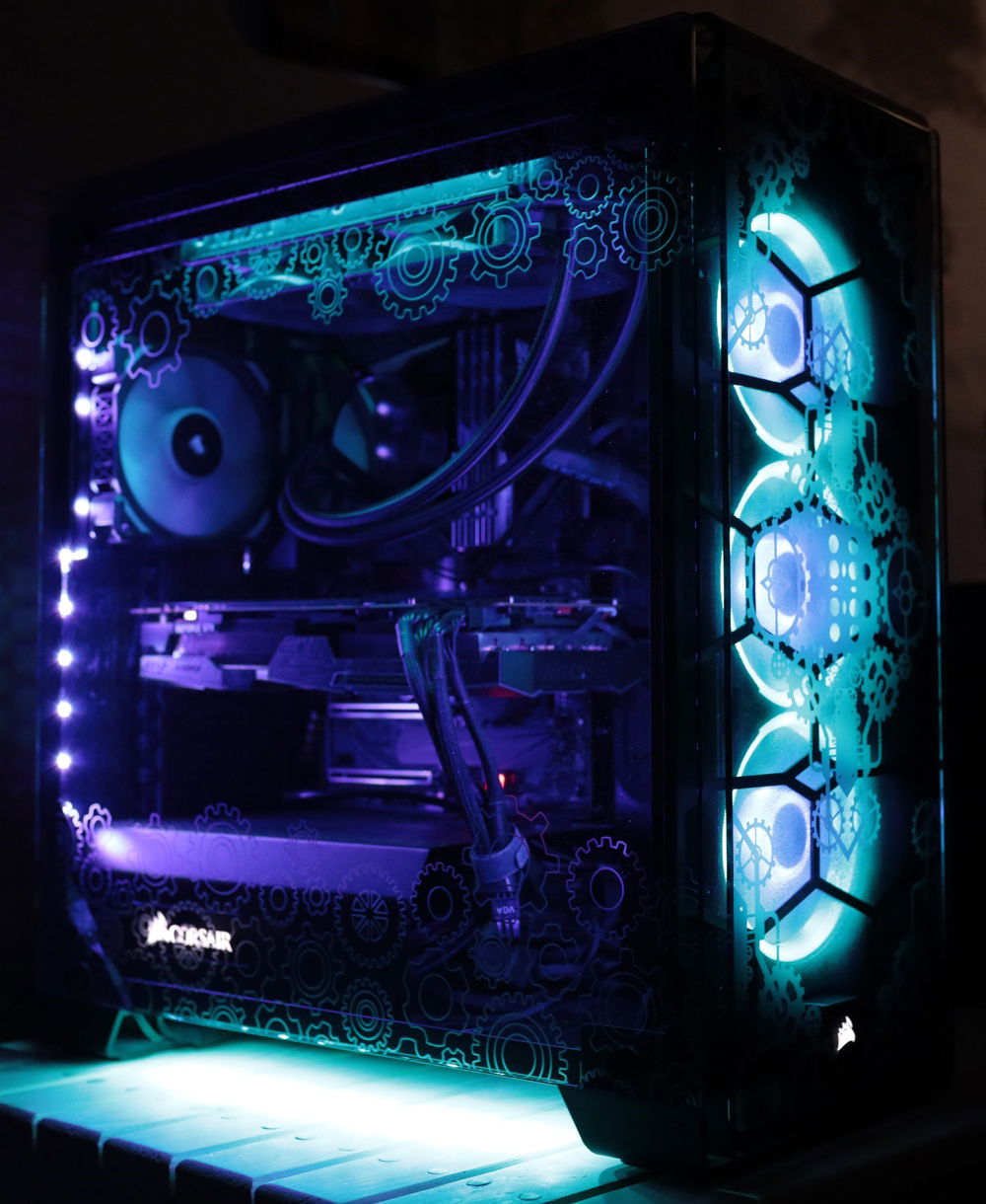 This is my personal Gaming PC, really the only special thing about it is the one of a kind custom laser engraving done to all four glass panels on the Corsair Crystal 570x. The engravings are a large gear pattern across the entire top and front and a smaller gear pattern across the upper and lower portions of the two side panels allowing for viewing of the components. Other than that it's a fairly high spec gaming computer that I also use for 4k video editing.