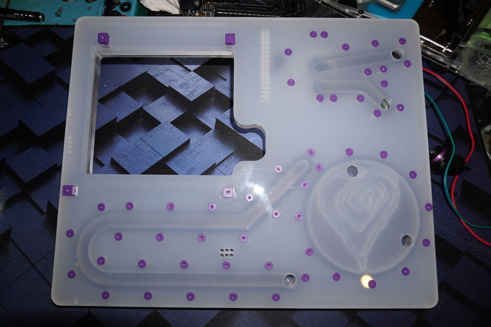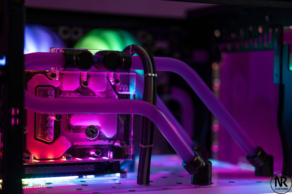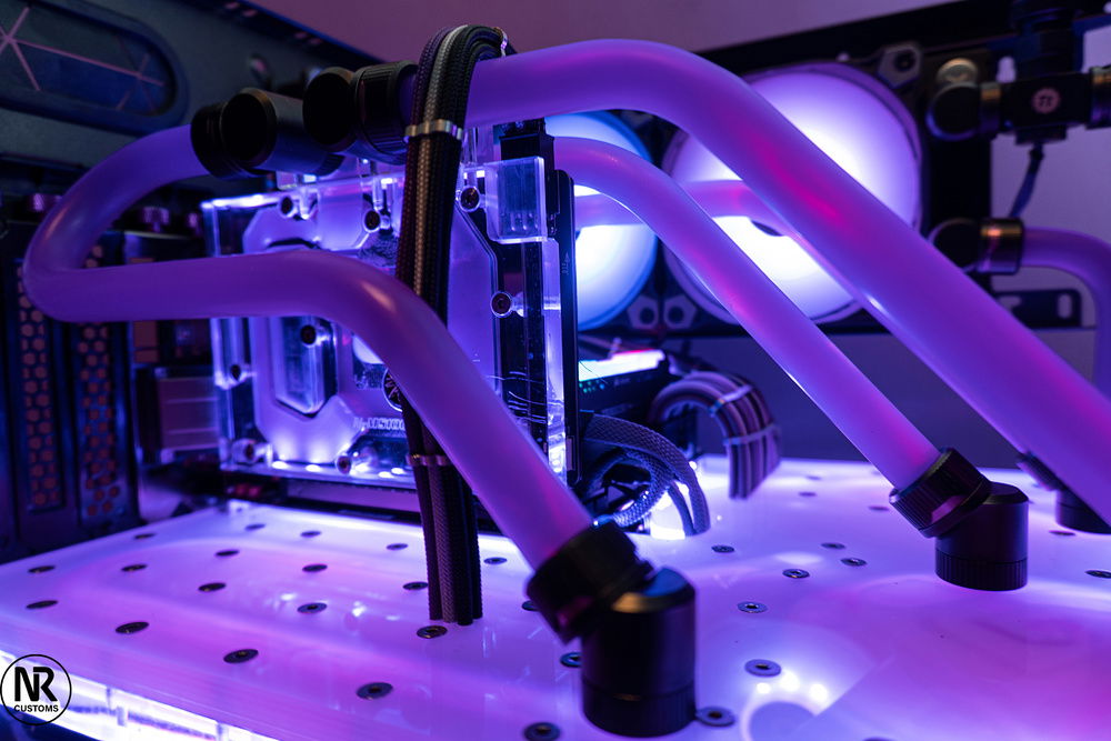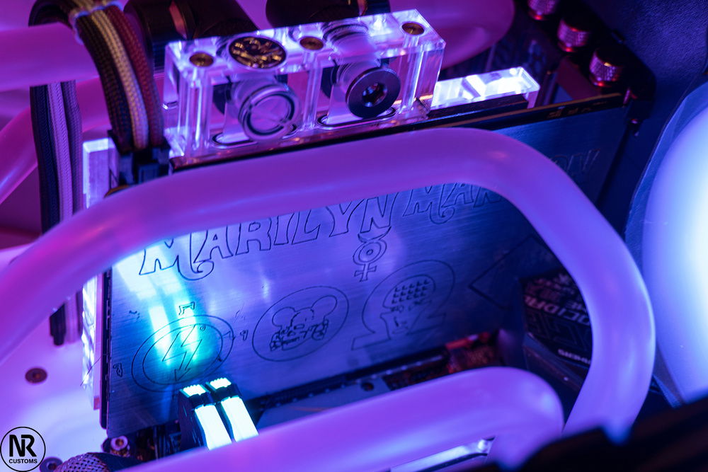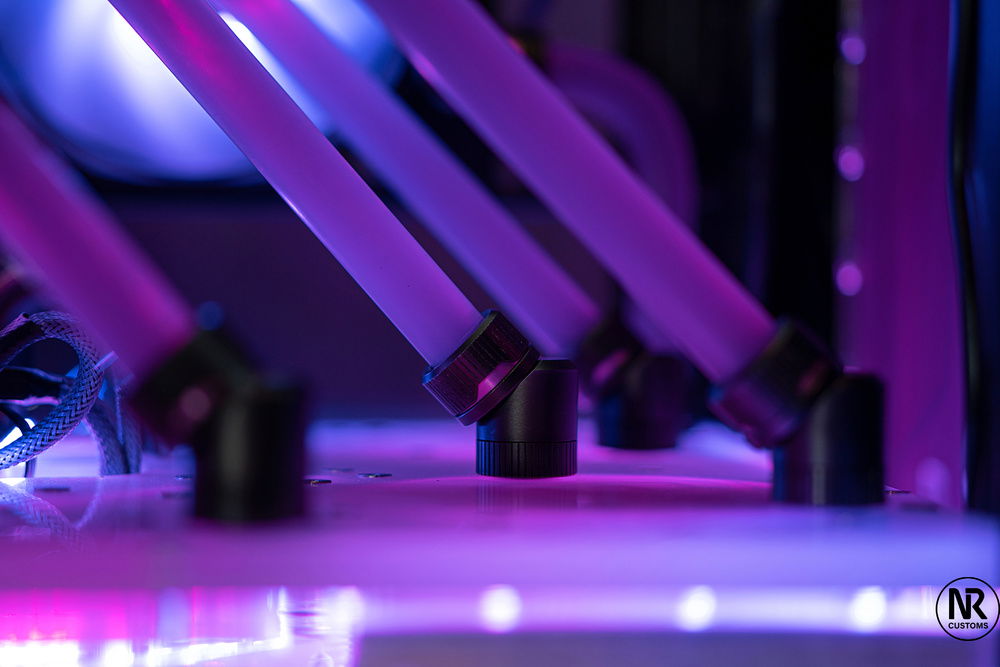 Vinyl stickers and a few 3d printed parts was also used for the build and a custom gpu backplate was engraved.Also acrylic tubes was sanded to look frosted.
