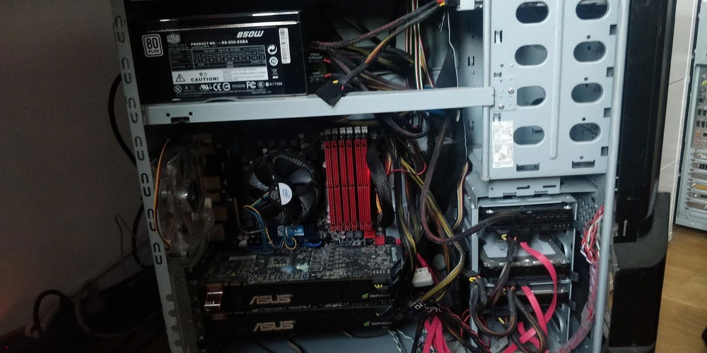 Its a mess but its not ment to be viwed inside really. Case is a litte beat up after all the lans it has been too.