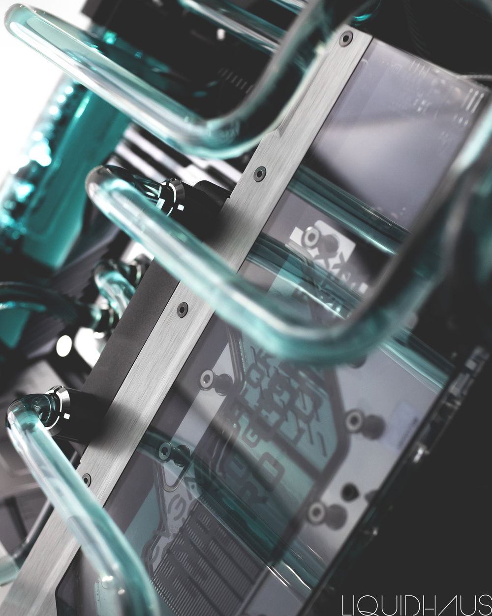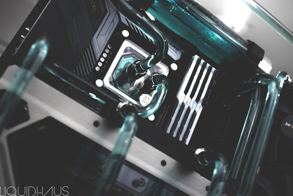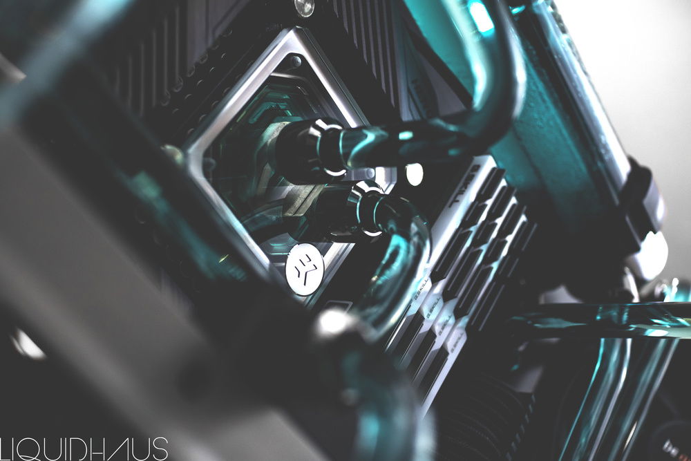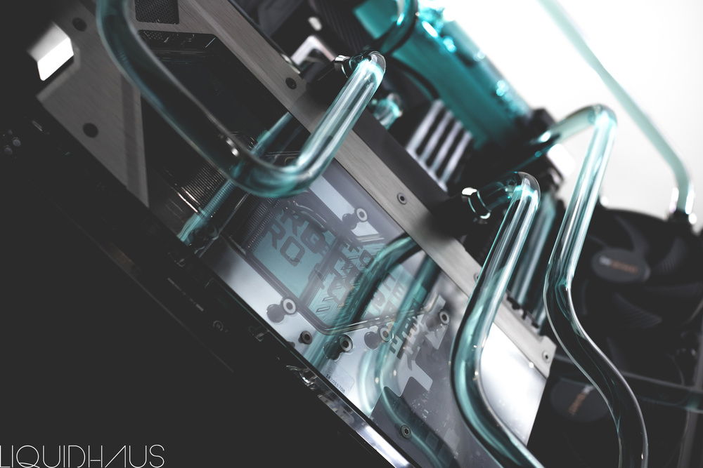 This is my 6th watercooled rig for a client, since launching LiquidHaus. He came to me wanting the 'LiquidHaus' style bends - long runs for the sake of long runs with many bends for the artistic look of them.