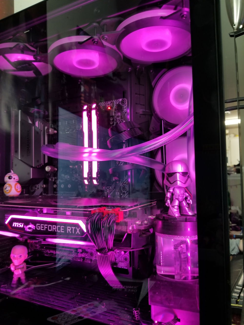 Found that this is the best case I've ever worked on. Fan setup is side exhaust and two top exhaust and one top intake in the the back. By using my vape lol. I was able to see the air flow pattern and this is the best setup IMO. MSI trio so super long so I couldn't mount the pump correctly.. So sorry for For that. Eventually I'll be going in to hard tubing.