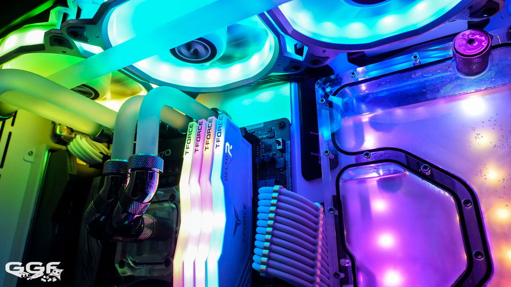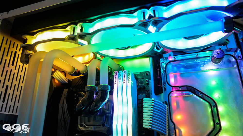 SPECS Intel i7 8700K ASRock Z370 Taichi 32GB Team Group Delta RGB ZOTAC GTX 1080Ti ArcticStorm Intel 600p 512GB M.2 SSD 2x 240GB Apacer Armor SSDs Lian Li PC-O11 Dynamic Lian Li Bora RGB Fans Seasonic Prime 850W Titanium Bitspower Fittings and Blocks EK PE Radiators CableMod Sleeved Cables Addicted PC RGB Power Cable