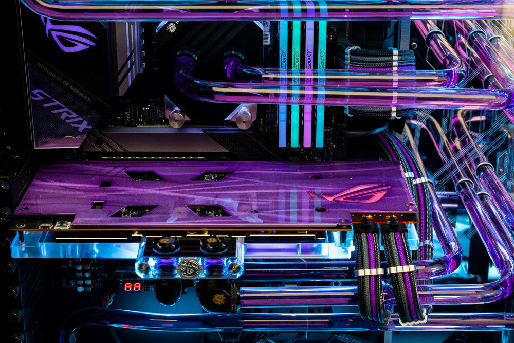 Ever since I was in the paintshop of a befriended painter I knew I wanted to do something with a specific type of paintjob I saw there. And I had the same idea when I first saw the Lian Li O11 Dynamic XL chassis. Combine this with ASUS hardware, Bitspower watercooling, Crucial Balistix hardware and Cablemod cables and we have a project 🙂