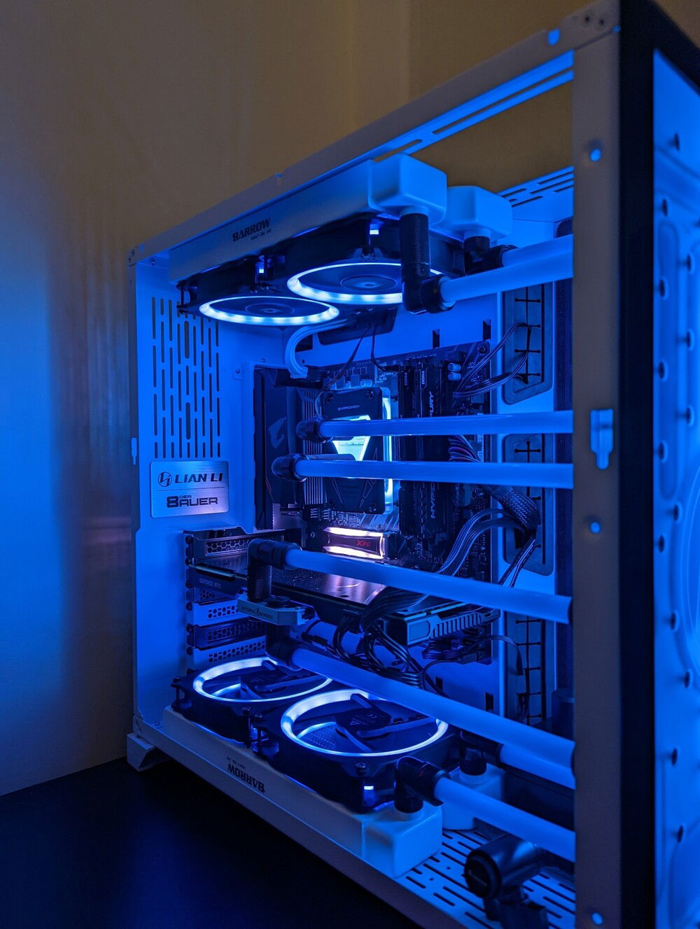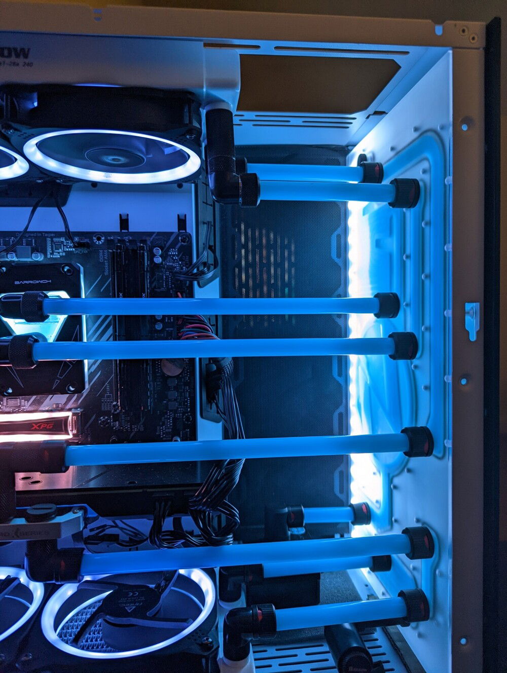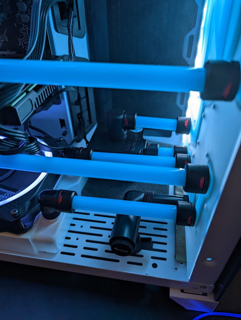 First water cooling build, Decided on front distro plate for some nice straight runs, still struggle with bending acrylic. Plans to change it all to glass tubing next year.