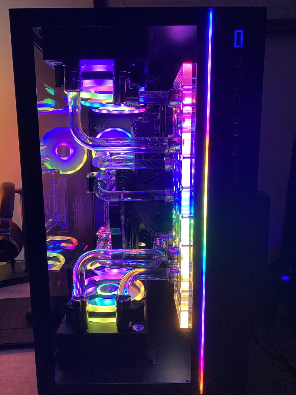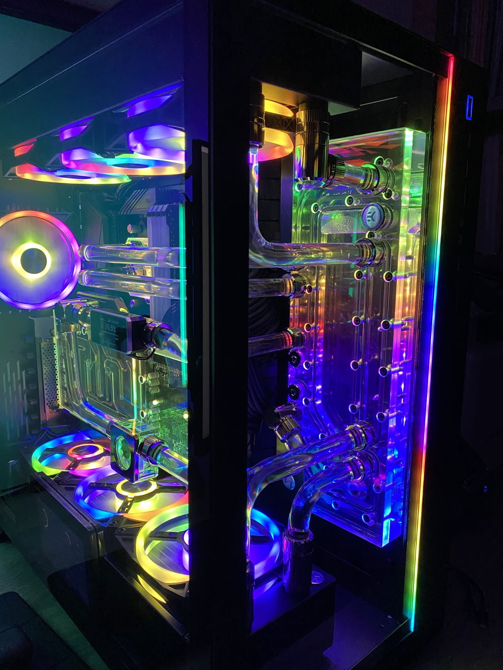 My second custom loop build. This case is a popular build for a reason, great lines and the G1 distro plate is such a fantastic showpiece. The EKWB kit is excellent, solid quality and great looks with the nickel. I wanted to mount the RTX3080 horizontally (the Vector Trio nickel backplate looks real smart) but it is about 10mm to wide for the case which was a shame, but the vertical mount still looks great.