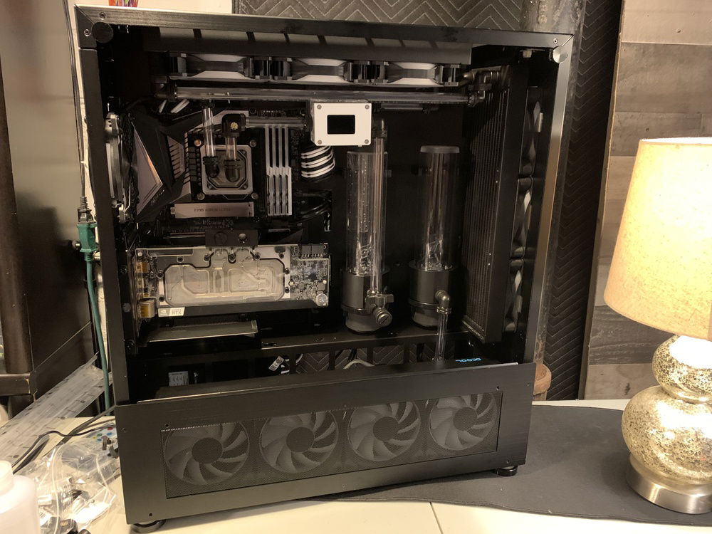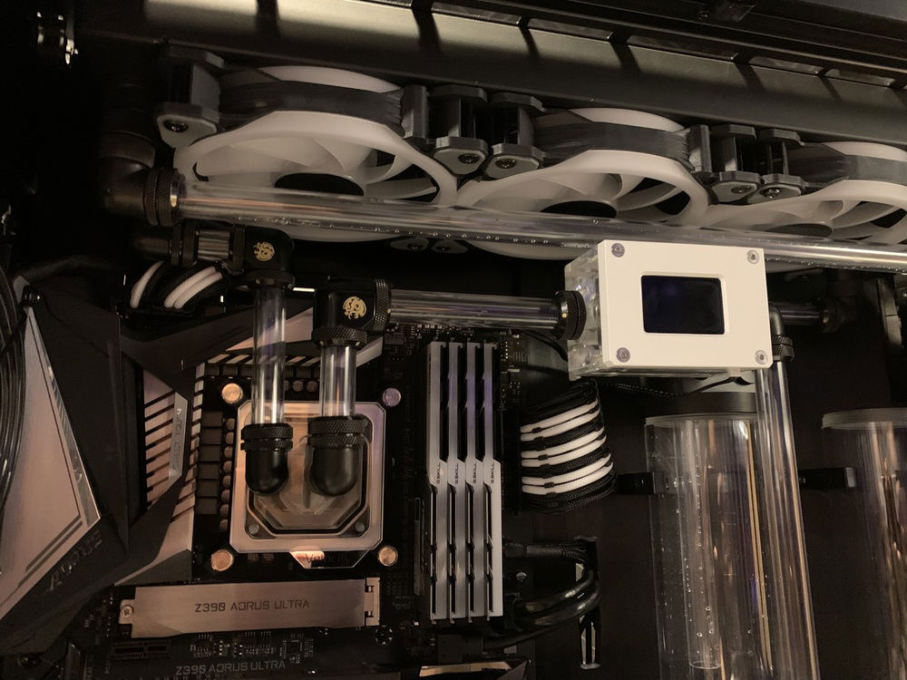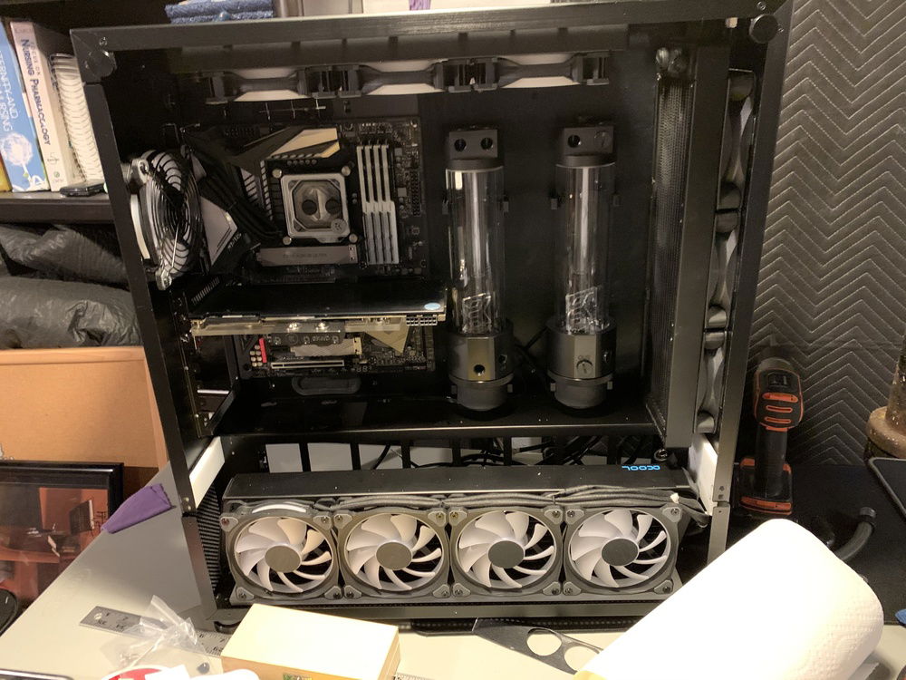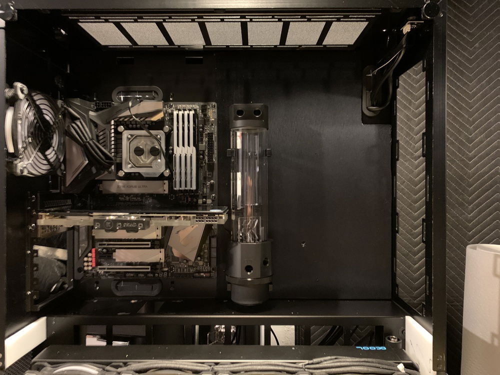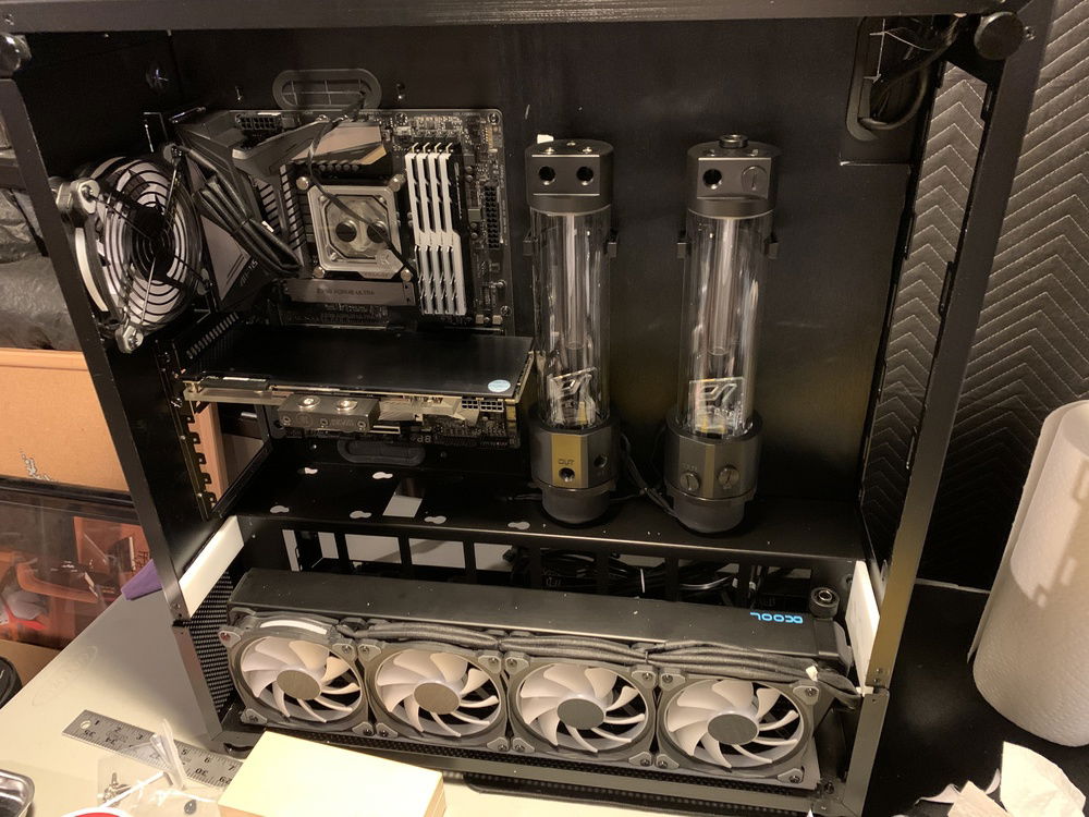 Disclaimer, I am not very good with tools and building construction type projects. I'm not a "professional" builder. I'm 38 and have been building PC's since the mid 90's but this is my first hardline build. I've done a dozen or so soft tube builds. This was incredibly challenging for me. I initially planned to do a mid-plate but ditched that about half way through due to the complexity of having 2 temp/flow meters specifically getting them to fit without blocking the GPU and still keeping things as symmetrical as possible.