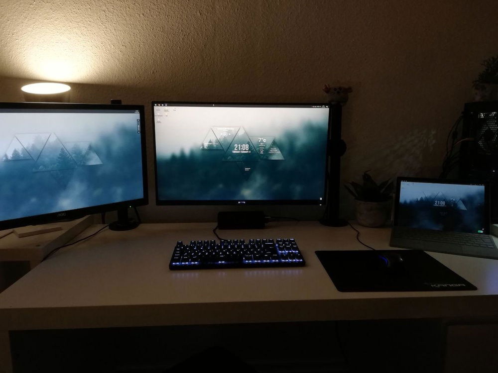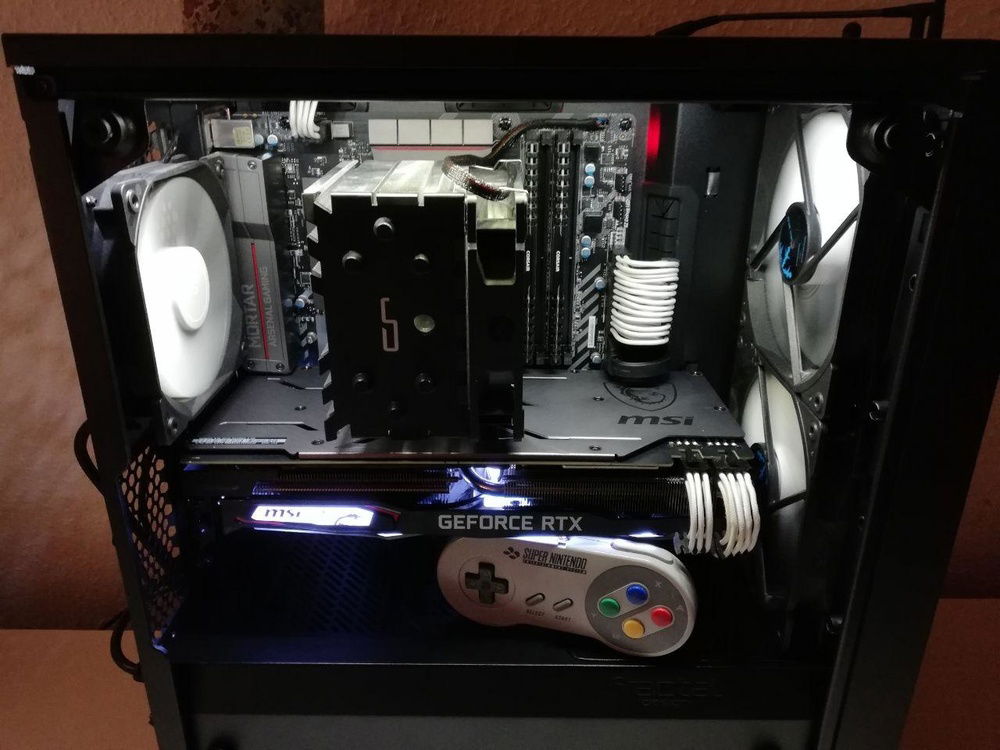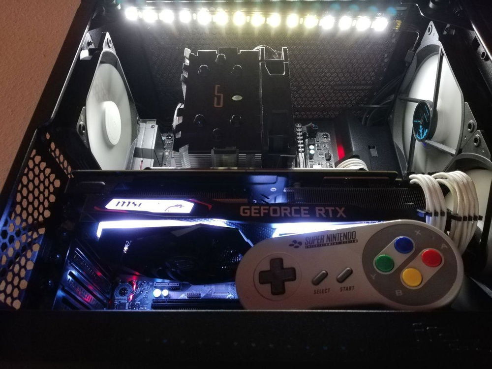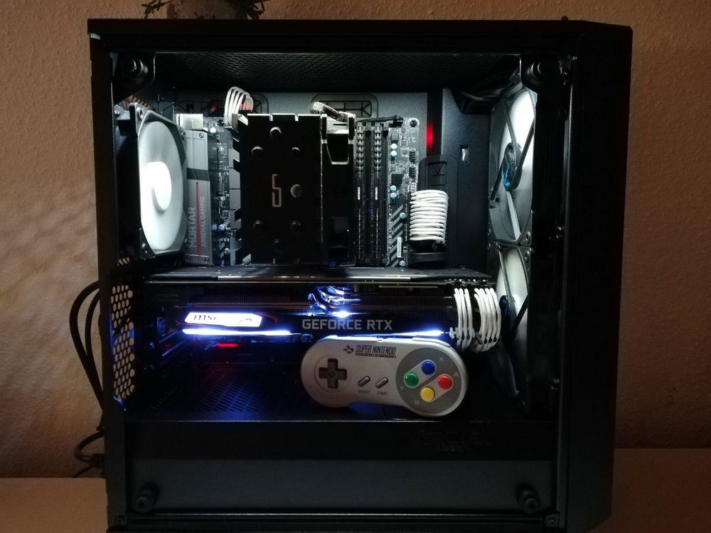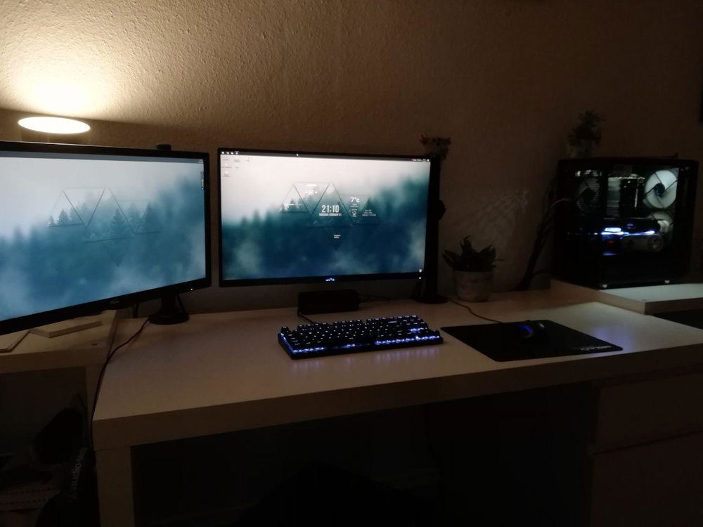 My Setup, mostly for university purposes, but ofc also for gaming. I went with an Black and White Build, since i always like them the most. Quite simplistic, aswell as my Desktop customized with Rainmeter and a few little extras like my plants and the SNES controller for optic and GPU stabilization and its perfect (At least in my opinion)